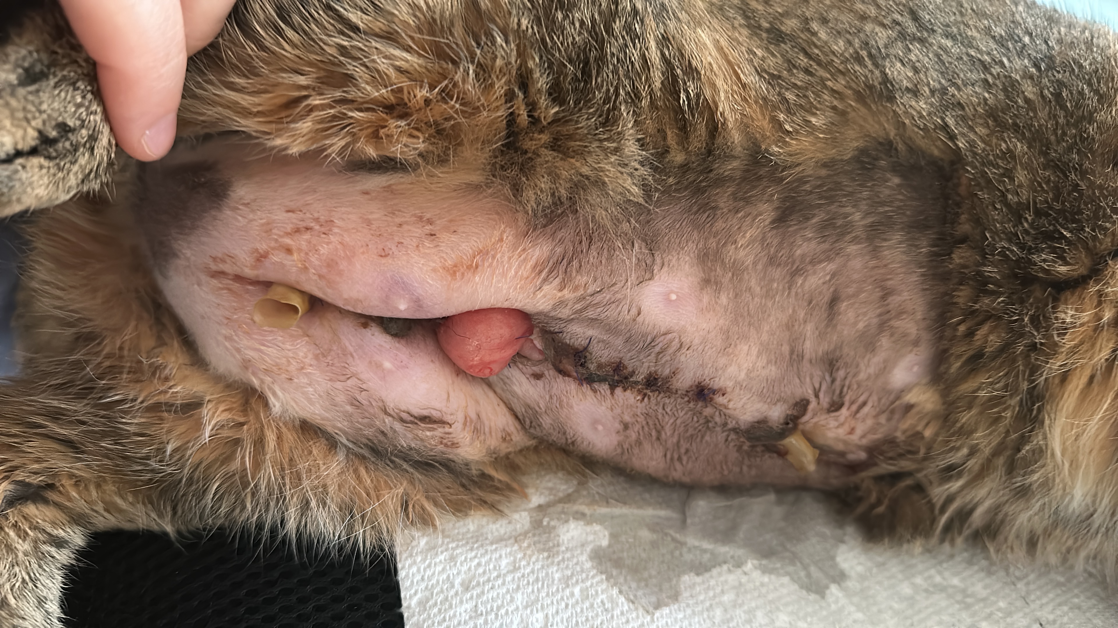 Hello, my name is Gloria and I’m in desperate need of your help! A couple of weeks ago our beloved cat, Tipsy, ate an earring and after days of medications and daily X-rays, she received a surgery as the situation was becoming too dangerous for her health. Everything seemed to go well until the 4th day post-surgery when she started looking off and all of a sudden started loosing liquid and smell very bad from her stitches. We obviously took her to the animal hospital right away cause it was a weekend evening. Even though we took very good care of her, gave her her meds and provided a safe and clean environment to rest on, she developed an internal infection that almost killed her. Because it was internal and very bad, she had to stay overnight to receive IV antibiotics and go under surgery again in order to understand the gravity of the situation, clean her and make sure it won’t happen again. Unfortunately a few days after this, a couple of her stitches broke, due to the bacteria accumulated around them internally. Her intestines almost fell out and we had to rush her to the hospital once again where she stayed for few more days under observation. We barely had the money to cover her first surgery, and we have now paid a total of 4k. We had a baby 6 months ago and for previous health reasons and a complicated pregnancy, I’m not on maternity leave/EI. We only live with one income and these vet’s bills are just too much for us right now.