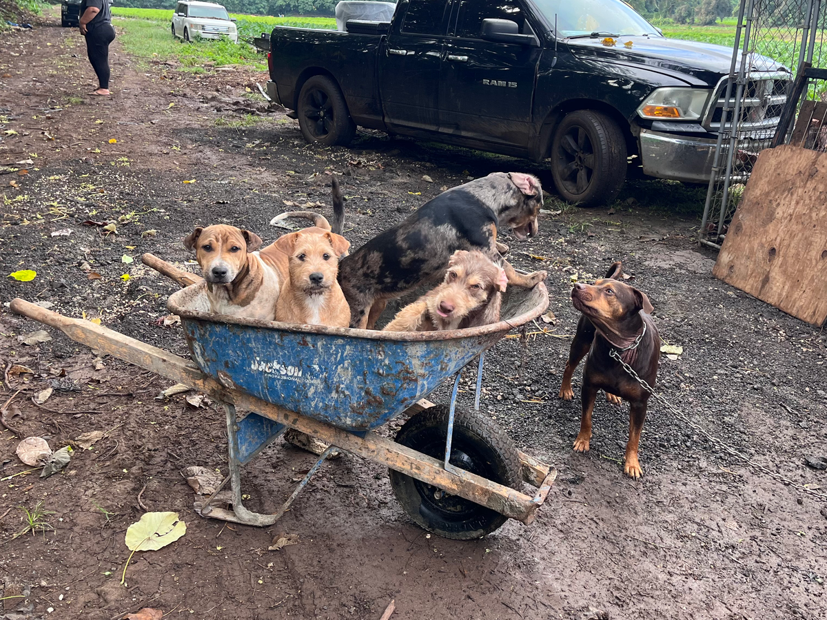 The Kona low storm devastated our home and farm in Laie, Hawai’i, leaving us with unimaginable loss. The damage was so severe that we had to relocate our dogs for their safety, and now our once-familiar home and farm are unrecognizable. Every day, we are working to clear out the debris and begin the long process of rebuilding, but the challenges feel overwhelming at times. Our family and the rescues we care for have lost everything in the flood, and the road ahead is daunting.