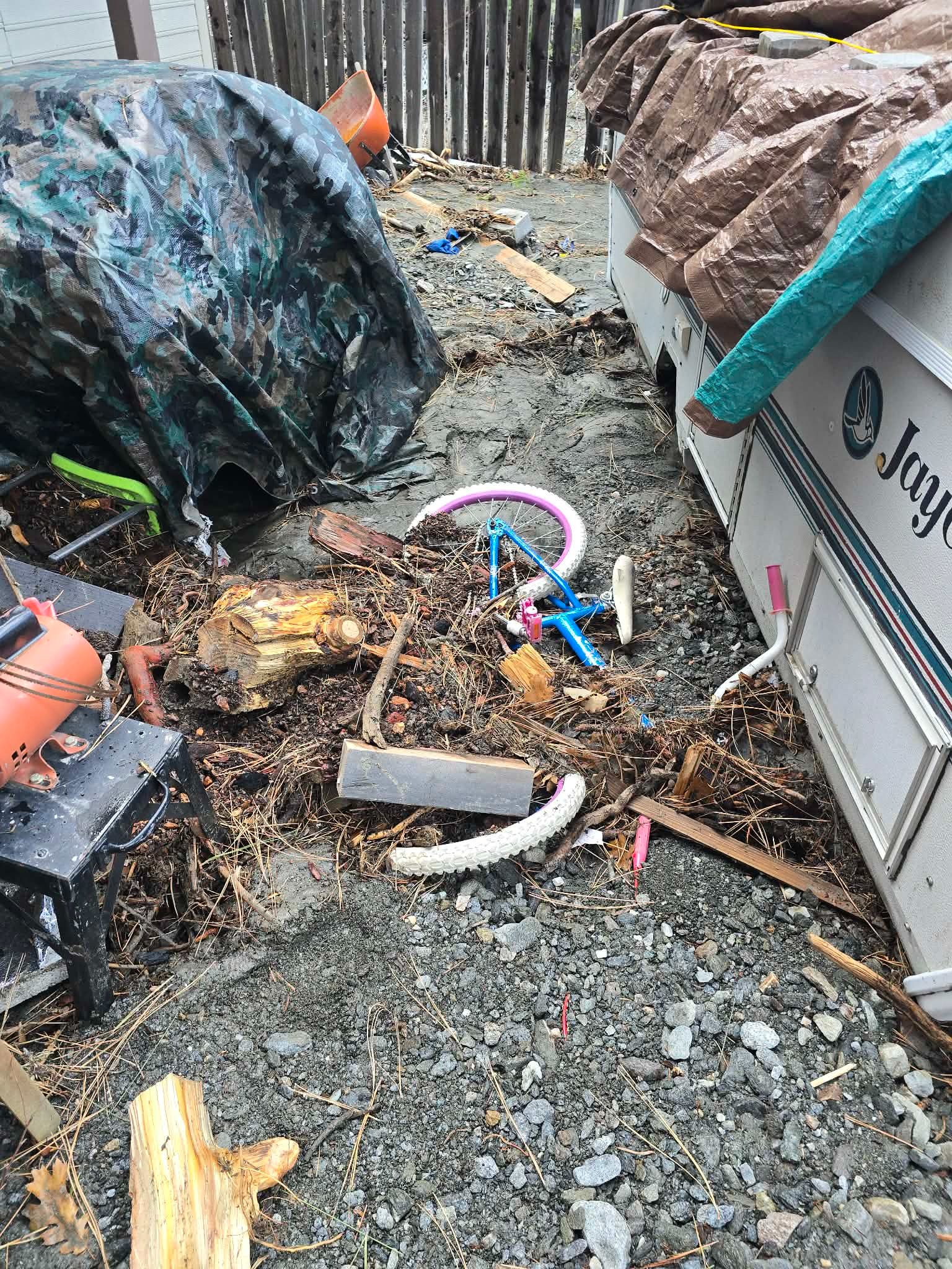 We have lived in our home for 7 years. We have been through a blizzard in 2023, a fire in 2024, and now a flood in 2025. This last weather storm has destroyed our back fence from the wash behind our home with all the rainwater. This then pushed a ton of debris, rocks, and mud onto our property. About 5 feet or more in our backyard, 3-4 feet of rock/mud debris on our driveway and 2 feet of mud/sludge into our garage. It will take a lot of strength and manpower to get our home back to normalcy. We don't have a washer/dryer at the moment, and we have to clean a lot of items to be used again. We need to get the mud/rock/debris removed from our driveway to be able to use it again. We need to build our back fence again, and also add some sort of berm and French drain to figure out how to deter water away from the garage to prevent more damage and keep our large Great Dane mix and kiddos safe. All of this on one income at the moment. Any help is greatly appreciated so we can get our home back to feeling safe again.