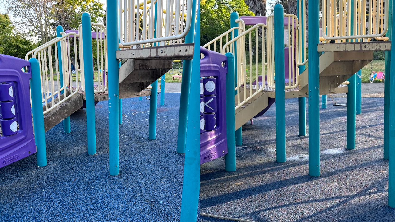 Hi, I'm Joanna and I'm a neighbor of Dover Park. My two young kids love the park, but I think it could be a much better experience if it were cleaner. There is what appears to be dirt and mold on the play structures, and it could really use a bath!