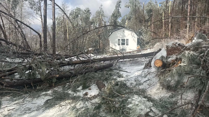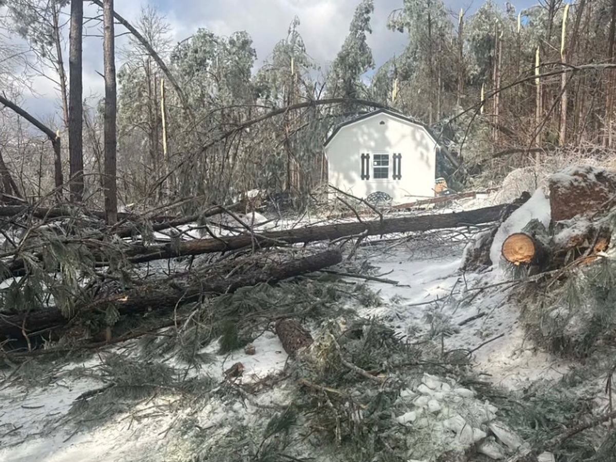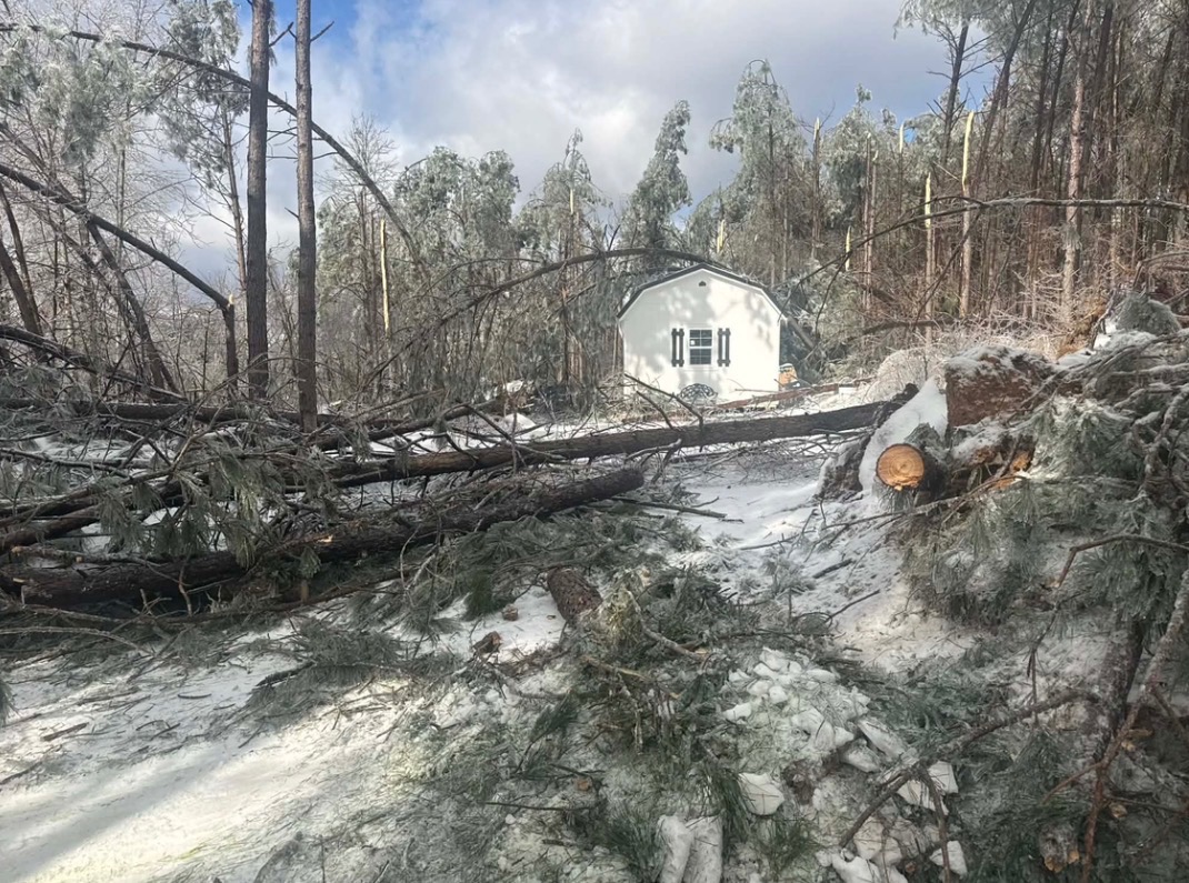 It froze lumber, exploding trees at extreme temps, that fell over our entire property. Five massive trees crashed down on top of our new home I worked so hard to obtain. Along with that, the shed we built—is completely crushed and destroyed along with memories from the house and our belongings inside of it.