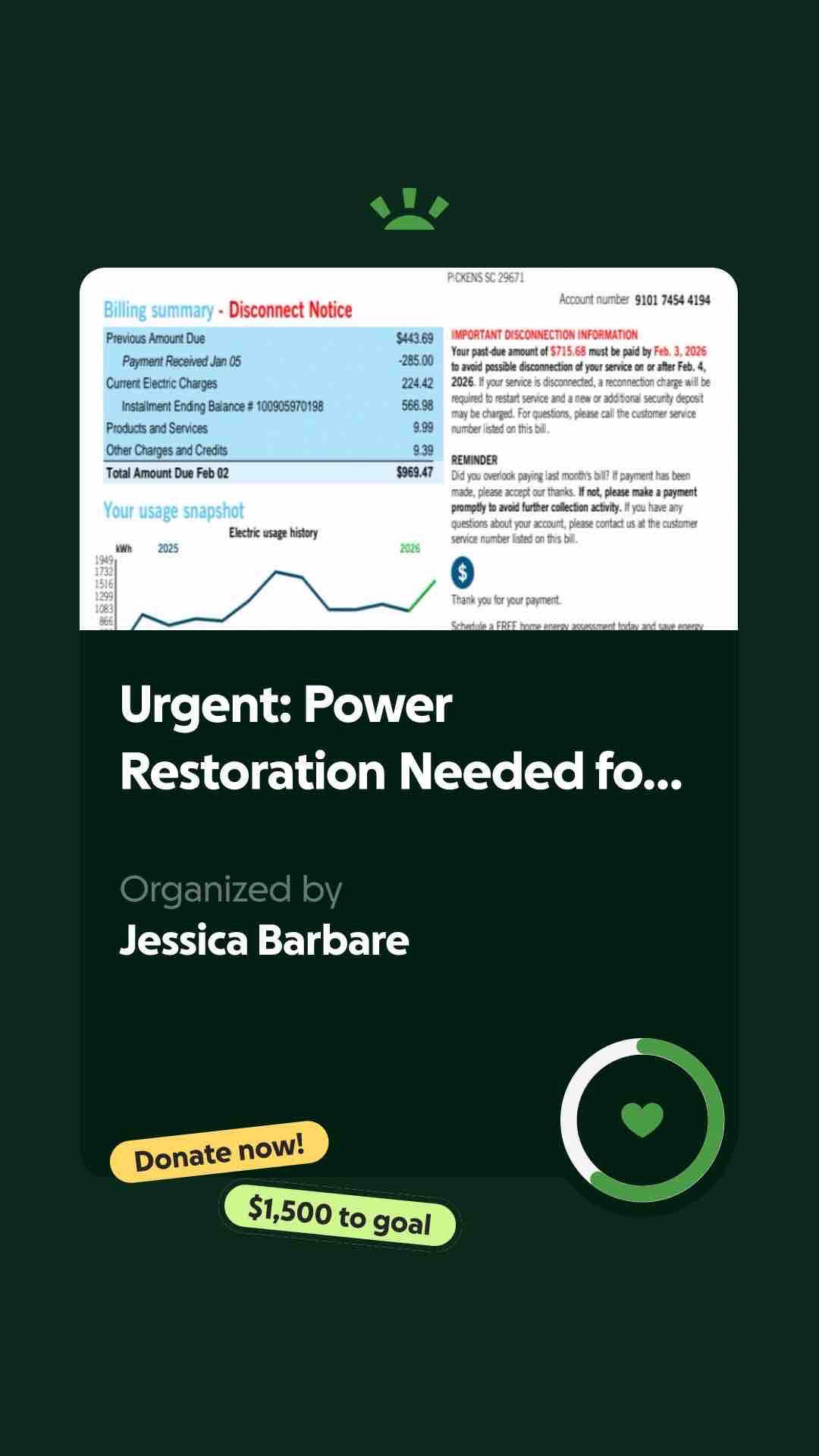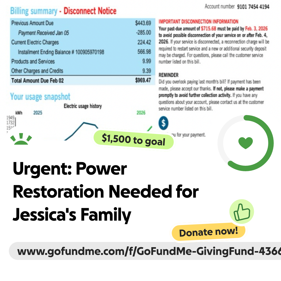 My mom recently moved in with me and my son, who stays with us on weekends. We were doing our best to adjust to the new living situation, and my mom was helping out by taking care of the power bill. Unfortunately, there was a mix-up—her payments were accidentally applied to an old power bill that was still linked to my number. We didn’t realize what had happened until we suddenly found ourselves sitting in the dark, with no time to prepare. We reached out to Duke Energy for help, but they weren’t able to offer any assistance. We’ve tried everything we can think of, but we’re now at a point where we need help from our community.