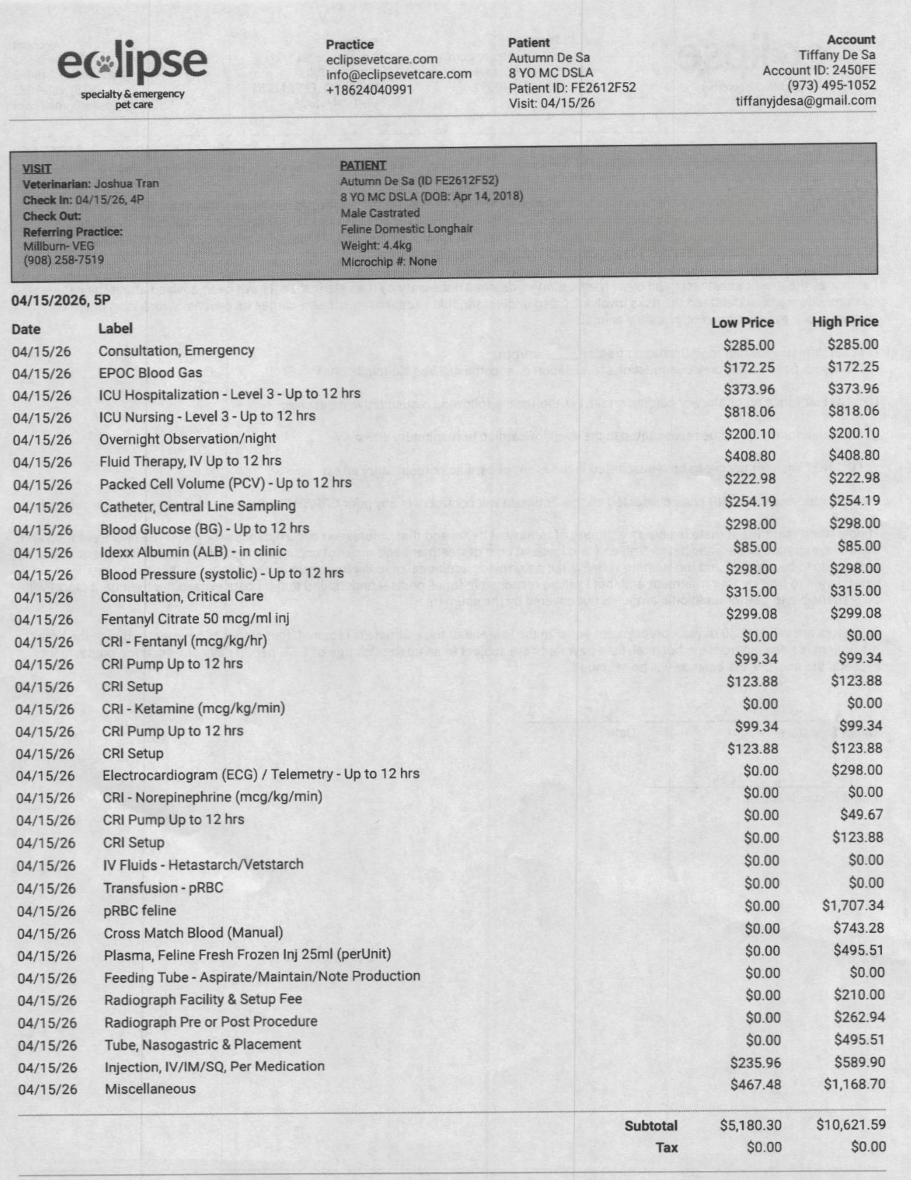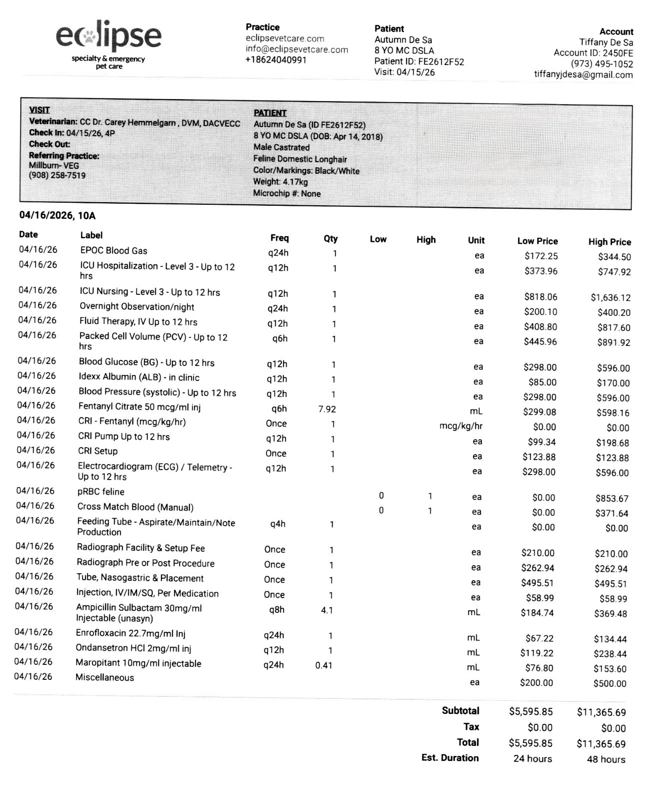 I have attached invoices through Thursday, April 16. As he continues fighting through post operative care, we are expecting additional costs of $5,000 to $10,000 per day over the next several days.