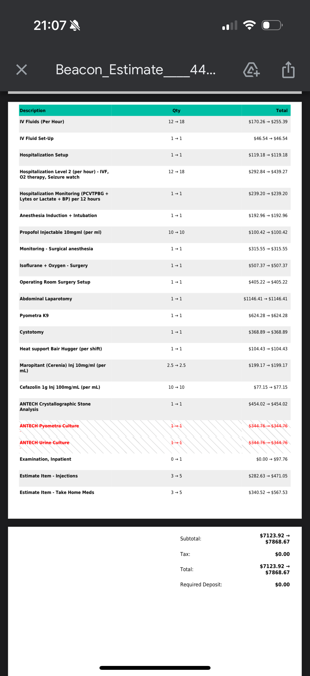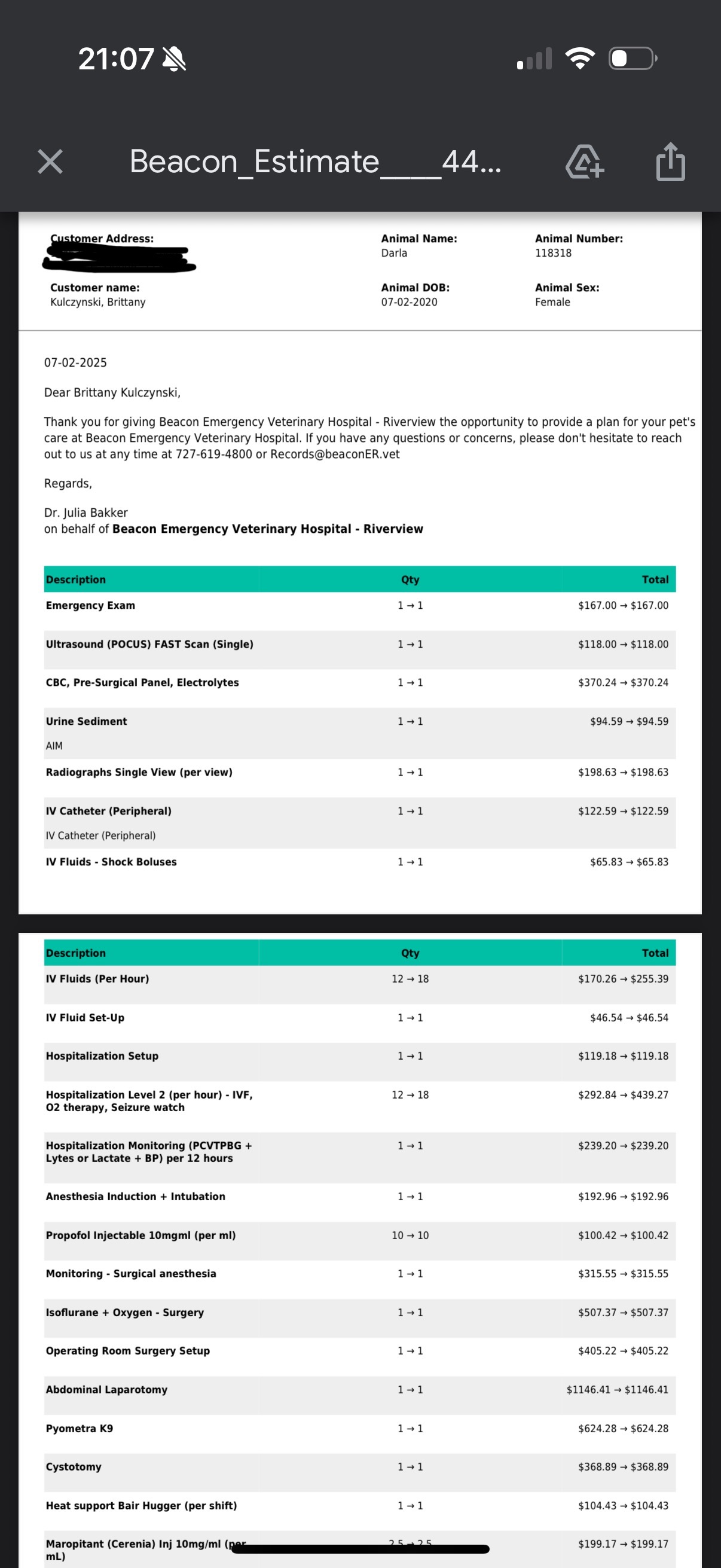 I have attached a copy of her full estimate for treatment.