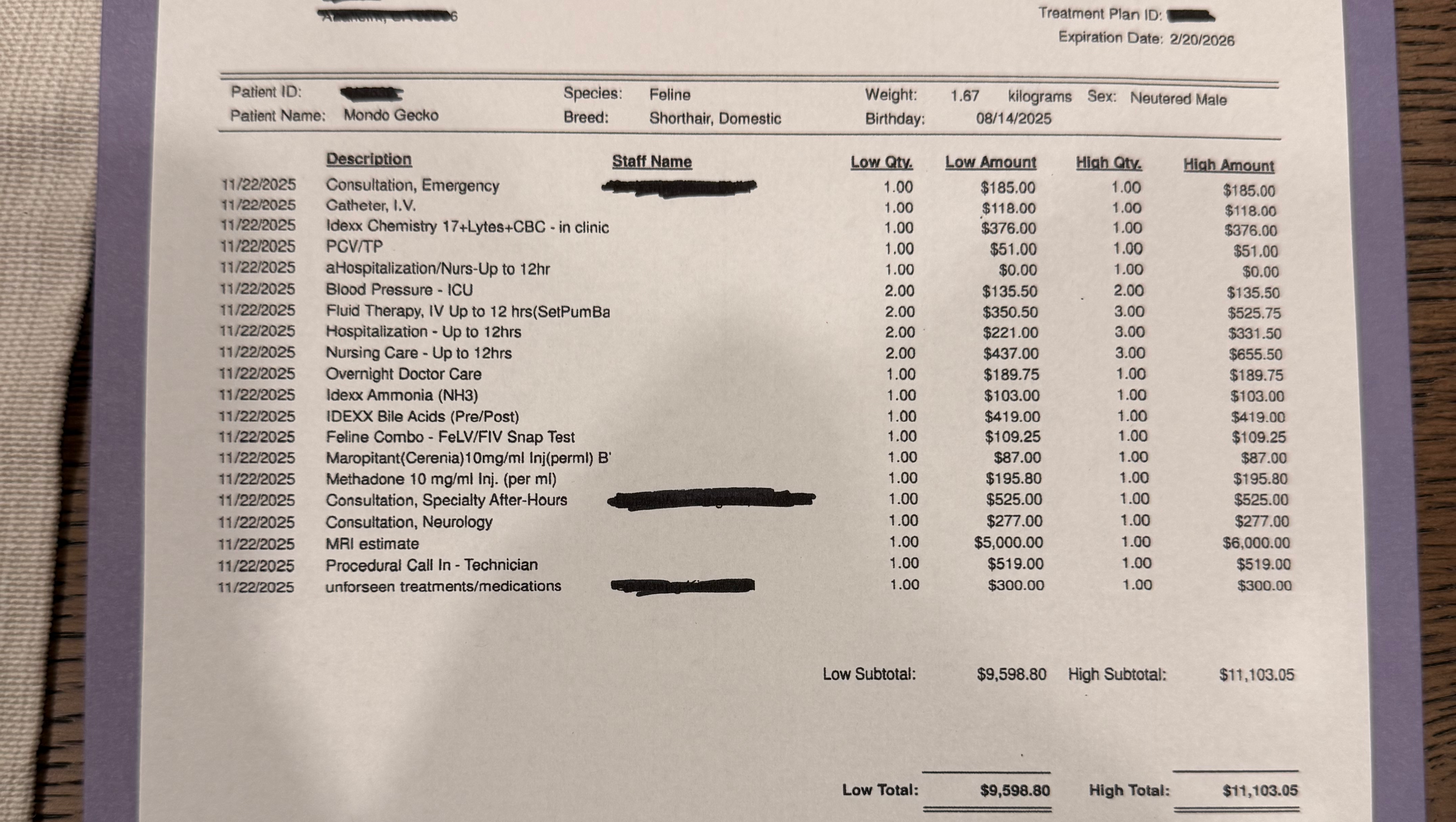 However, just earlier this week (11/21/2025) we noticed him limping from his back left leg and took him straight to the emergency vet to find out what was wrong. After the x-rays and tests the vets noticed nothing abnormal or wrong with him on paper, so they sent us to a neurologist to get him the care he needs.