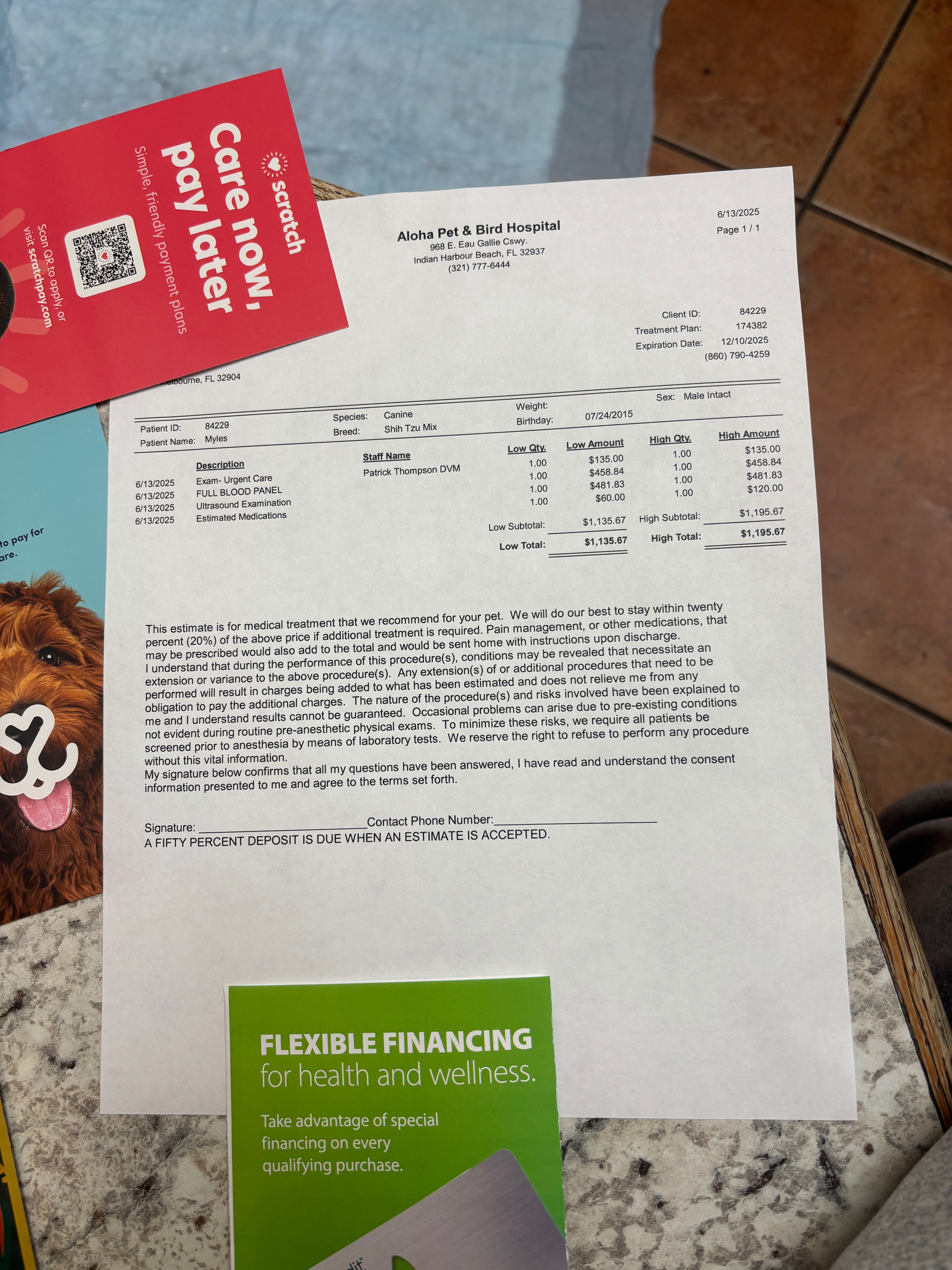 So the story is, Myles started peeing blood two days ago, whining and not sleeping. Almost a complete loss of appetite. So I took him to the animal hospital, and they were so kind. They did what they could to help lower the bill for us to get the services he needs, but they are too much. I mean, you can’t put a price on your pets, but we financially can’t afford to pay this. We were told he has a large mass/tumor in his bladder, and to know the extent of it, blood work and ultrasounds, then surgery, we need to pay these amounts. He now needs doggie diapers as he has become incontinent unfortunately and because it’s blood and urine the diapers help keep him safe and things sanitary.
