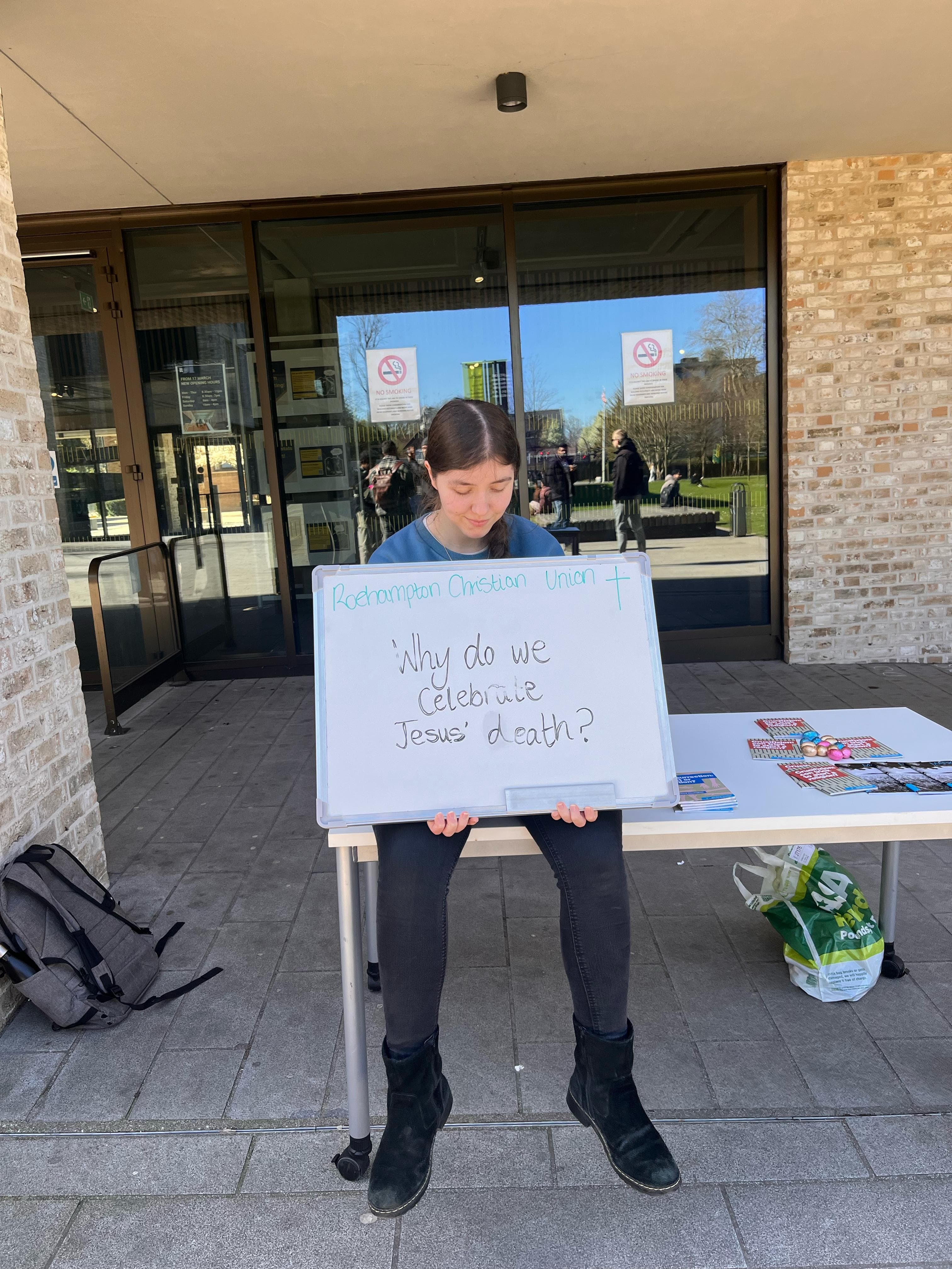 Hello, my name is Hannah, and I am writing this on behalf of Roehampton University's Christian Union. We are followers of Jesus with a vision for sharing the Gospel with our fellow students and seeing lives changed.