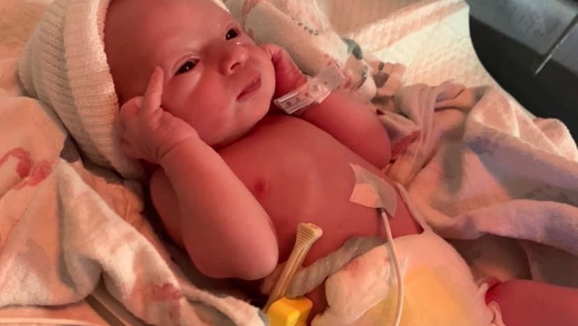 “Now that she is improving and there is talk of transfer in the near future, to the next level down out of critical ICU, I will share what exactly our daughter went through. She started out a few weeks ago with preterm labor and preeclampsia. She has been back a few times to the hospital & had appointments/call ins over the last two weeks. Her preeclampsia got so severe that this last time she went into the hospital (Monday morning 2/27/2023 about 6:30am), she started seizing within minutes of getting into OB room. Her BP got extremely high and they tried controlling it but after her second seizure they rushed her in for emergency c-section and he was delivered at 9:49 am. She continued with seizures (eclampsia) and BP issues after the C-section and ended up having a large intraparenchymal brain hemorrhage left parietal lobe 4cm (brain bleed). They then ordered her to be transported to another hospital with better capabilities of helping her. If you look up her hemorrhage, you will see how amazingly thankful we are that she is still with us. She truly had a guardian Angel watching over her & her baby boy.
