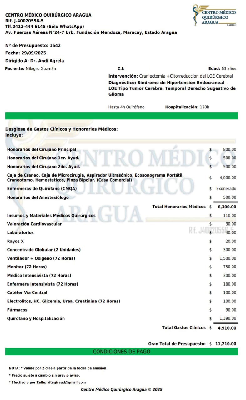 Quiero compartirles algo muy difícil que mi familia está atravesando una vez más. Mi cuñada, Milagro Guzmán, ha sido diagnosticada con cáncer cerebral en etapa 3.