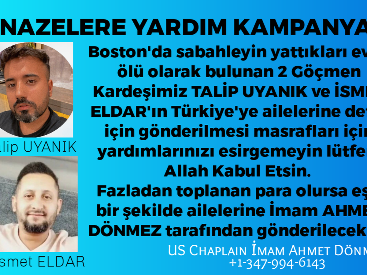 "Ismet had been in the Boston area for almost two years, hoping to work and save money for his wedding. His fiancée has been informed of his passing. The family in Aydın, Turkey, is devastated by the news of his sudden, unexpected, and tragic death. As IMECE, we are hoping to repatriate his body to his family and loved ones in Turkey for burial. Please help us reach our goal to send his remains to Turkey. Thank you for your support.