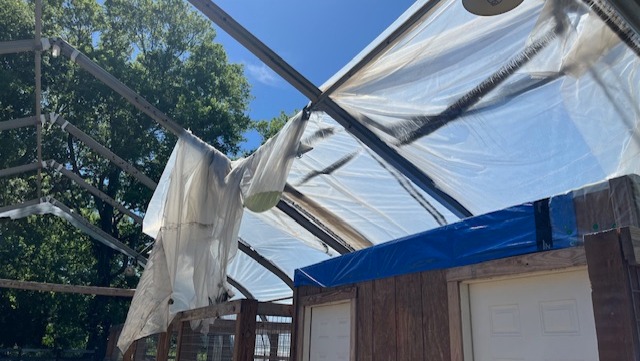 We also need to put a permanent roof on the greenhouse, our plastic sheeting has been damaged through recent bad weather.