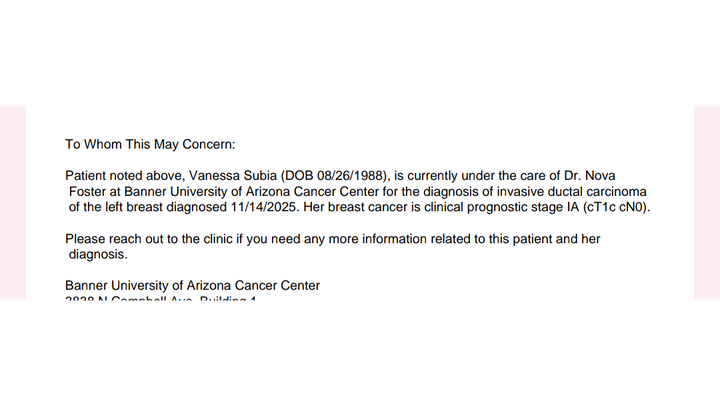 Hello my name is Vanessa back in November I found out I had breast cancer it's been a journey a life-changing chapter in my life I had a major surgery done in February I am on FMLA with no pay because I didn't enroll I didn't think I would ever get sick like this and I'm not scheduled to go back to work until middle of May this is embarrassing asking for help I do have a lot of support but when your rents 2100 plus bills and I do not receive any kind of food stamps it's been really rough trying to get by been in the hospital three times since my surgery in the hospital now due to infection in my body had emergency surgery yesterday they had to do blood transfusion I just pray for this to pass. I want my life back to normal I'm a hard-working woman always worked so to be stuck without work staying in bed is so hard on me at the moment So I'm asking for help anything could help I appreciate you all I have so much support prayers Thank you guys for listening to my story I also have Zelle 5206037659