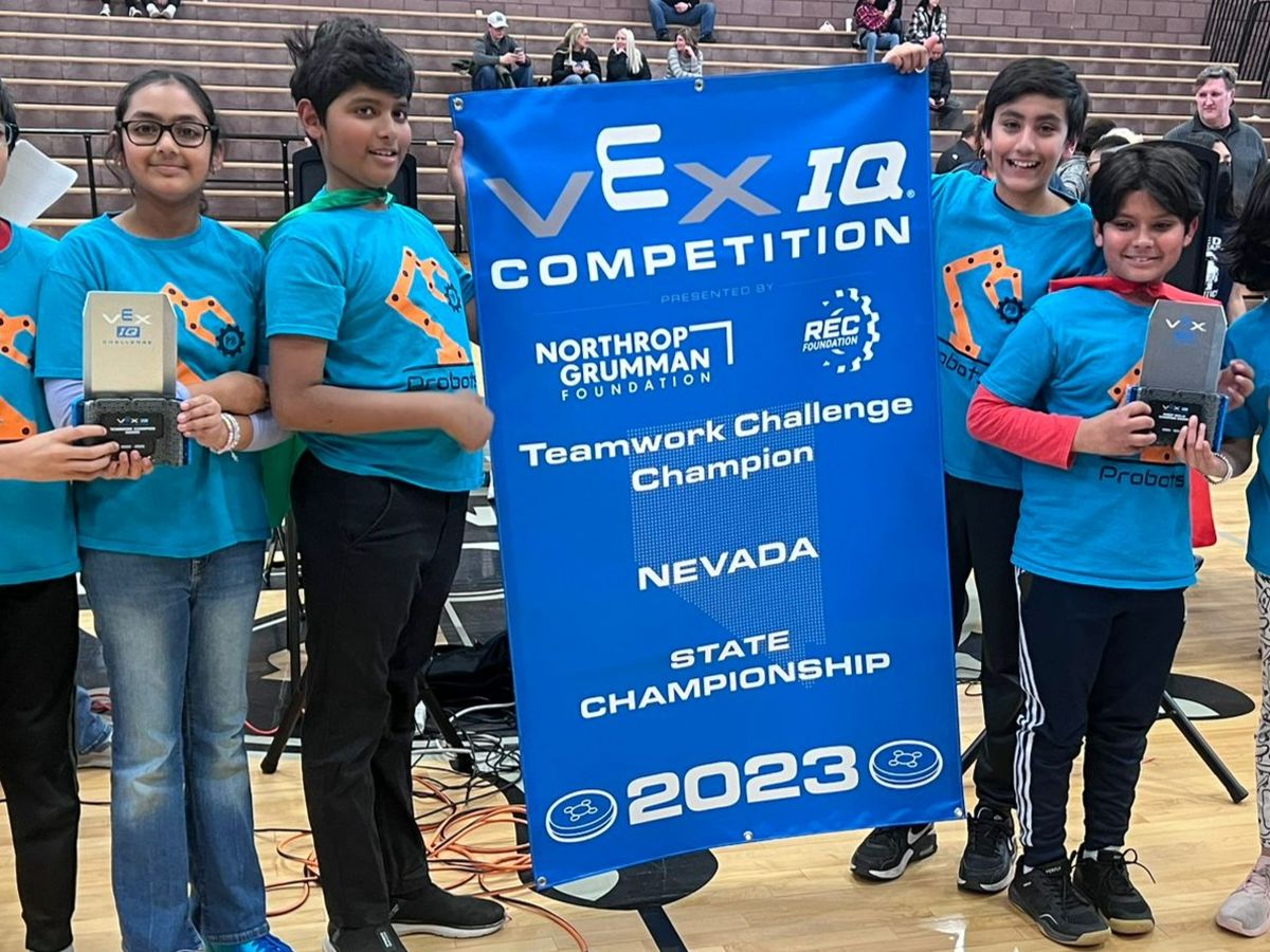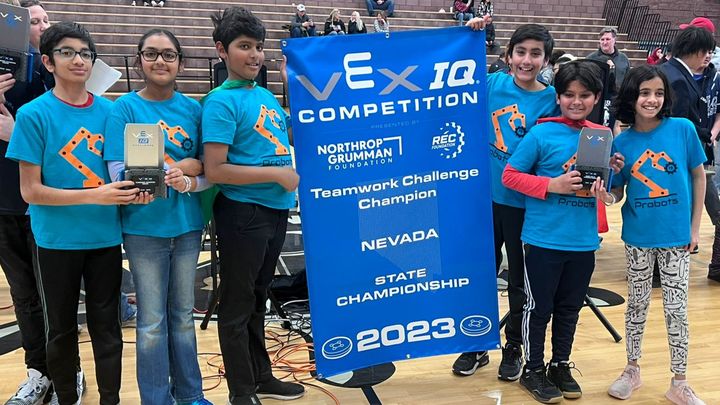 A middle school team with 6 kids, Probots, coached by Rekha Subramanian in their first year of competition won several awards in the 2023 VEX Robotics championship contests including Nevada State Championship (1st place) in Robot Skills and Nevada State Championship (1st place) in Teamwork Alliance. With these results, this team received invitation to compete in the VEX IQ Worlds Championship event (800 worldwide middle school teams) to be held at Kay Bailey Hutchison Convention Center, Dallas, Texas from April 29 to May 2, 2023, and will be representing Nevada.