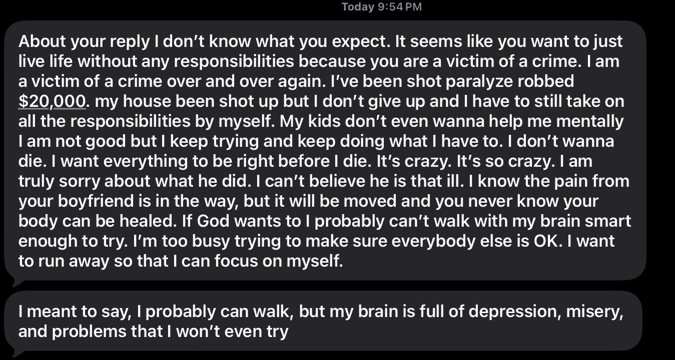 My name is Victoria, and I’m reaching out because I’m at a crossroads in my life. I’ve spent years in a toxic household, and when I tried to escape, I found myself in a domestic violence relationship. Now, I’m back in the same difficult environment, feeling more isolated than ever. Being adopted, I don’t know my real family, and my adopted family is struggling too, so I don’t have the support system that many people rely on.
