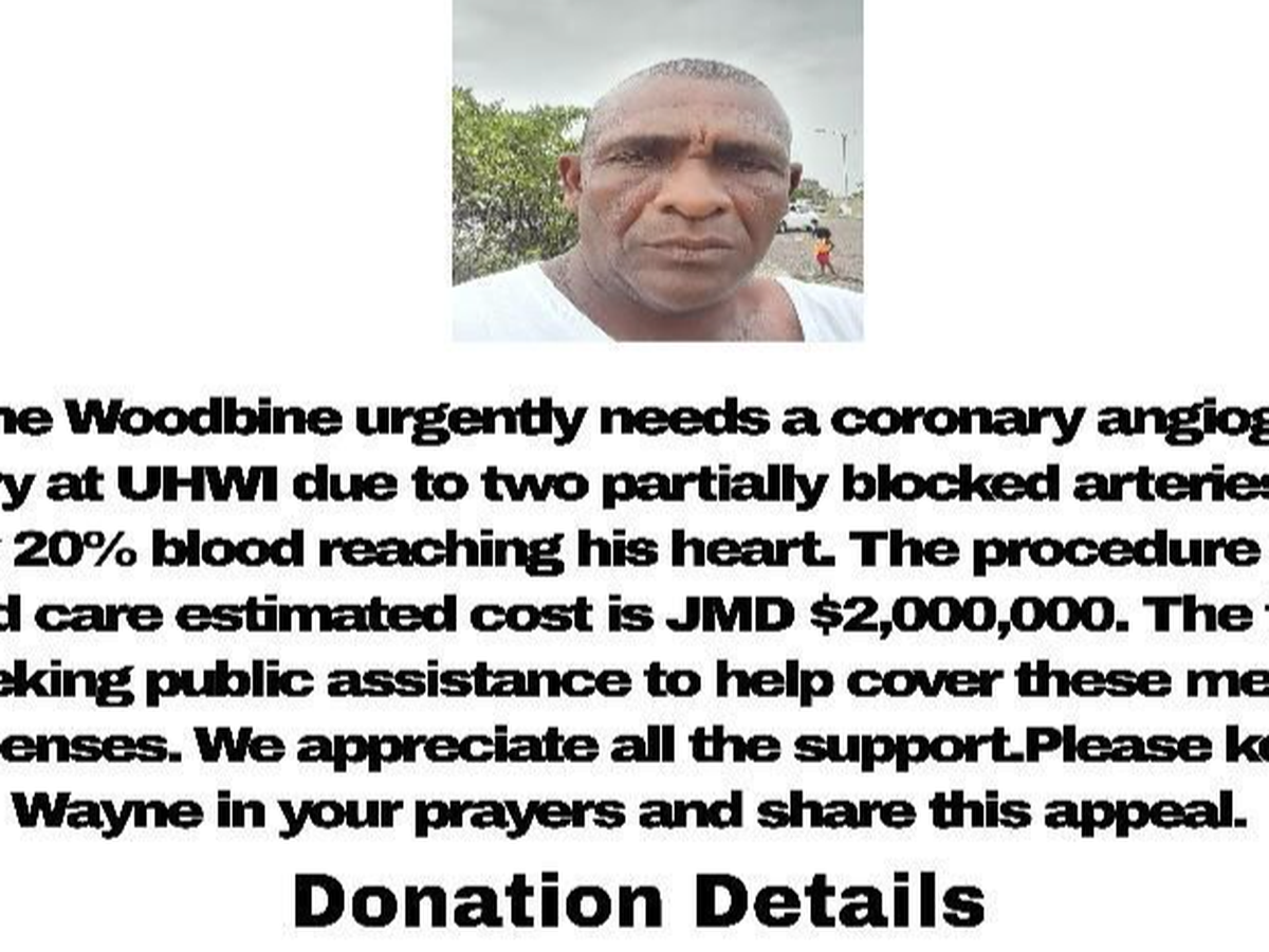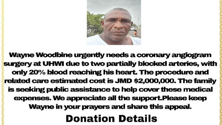 This is my dad Wayne Woodbine otherwise known as Wayne Marshall/Mackerel a well-known taxi driver on the Negril route in Westmoreland. He is currently in the Sav-la-Mar Hospital and he is in need of a urgent coronary angiogram surgery at the University of the West Indies in Kingston Jamaica. He has two blocked arteries with only 20% of blood flow reaching his heart. We are seeking help from the public in assisting with my dad medical expense which is estimated at around 2,000,000 Jamaican dollars(JMD). Your contribution will be greatly appreciated thank you.