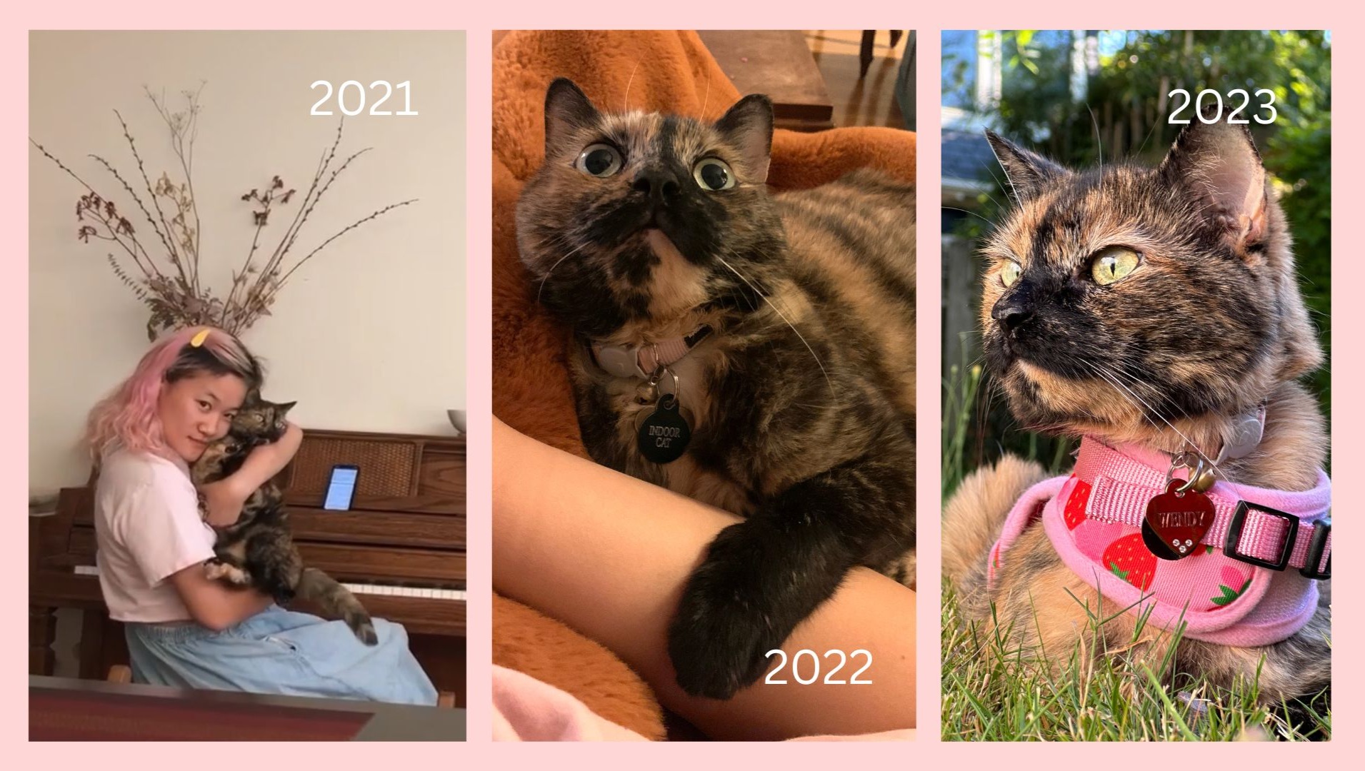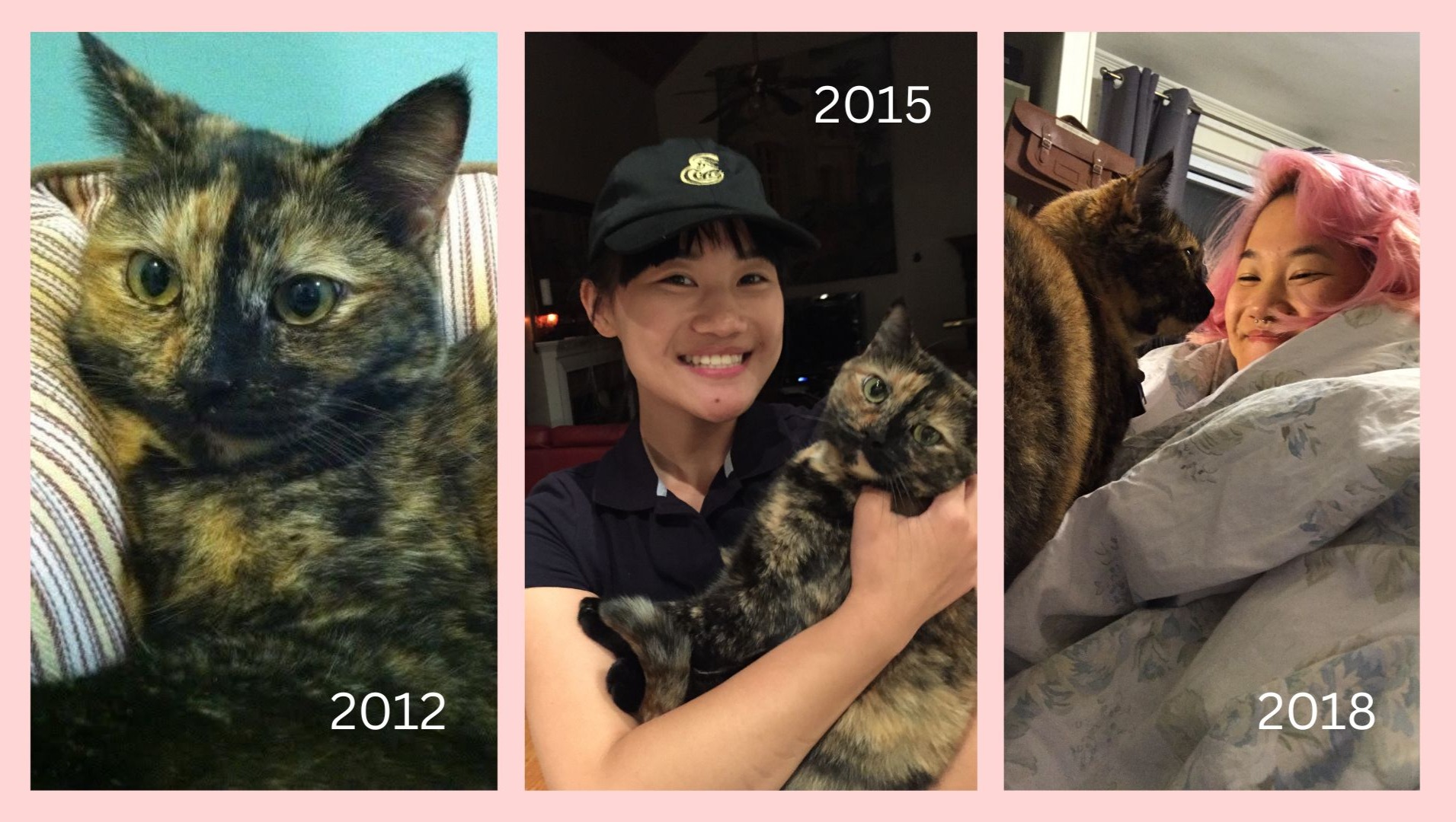 Wendy has been my beloved companion since I was 15 years old. Adopted from a shelter in 2012 as a 10-month-old kitten, she has been my trusty familiar, accompanying me through high school, college, a cross country move from Pittsburgh to San Francisco, and eight different homes (including four community houses).