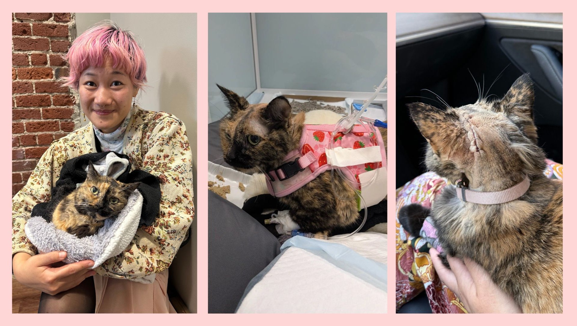 Wendy, Bernice's beloved 14 year old tortoiseshell cat, underwent emergency brain surgery on October 30, 2025 to remove a huge meningioma tumor that was taking up nearly 30% of her cranial cavity.