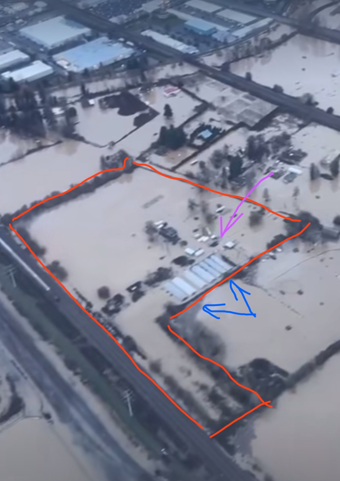 But this winter is different. A massive atmospheric river brought unprecedented rain to western Washington, and because the temperature was warm, it did not fall as snow in the mountains. Instead, all of that rain funneled into the reservoir behind the dam, more than could be contained. The Army Corps of Engineers released water as needed to reduce pressure behind the dam, which led to moderate flooding in the valley. As a result, on Thursday morning, the lowest parts of the farm began to fill with water. By the afternoon, the farm was about 50% flooded... all of the fields.