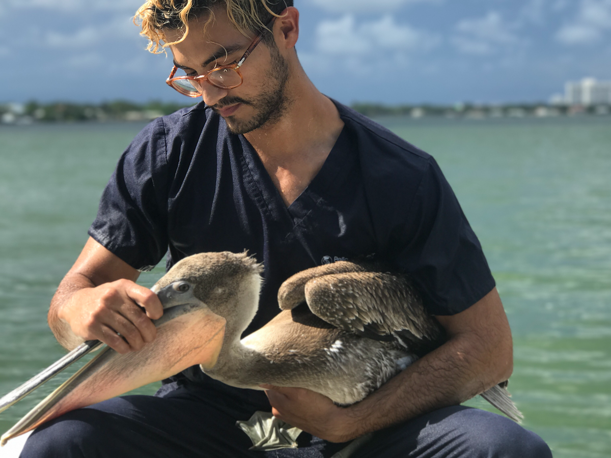 Pictured: Employee with rehabilitated pelican ready for release. WREF grantee: Pelican Harbor Seabird Station, Miami, FL.