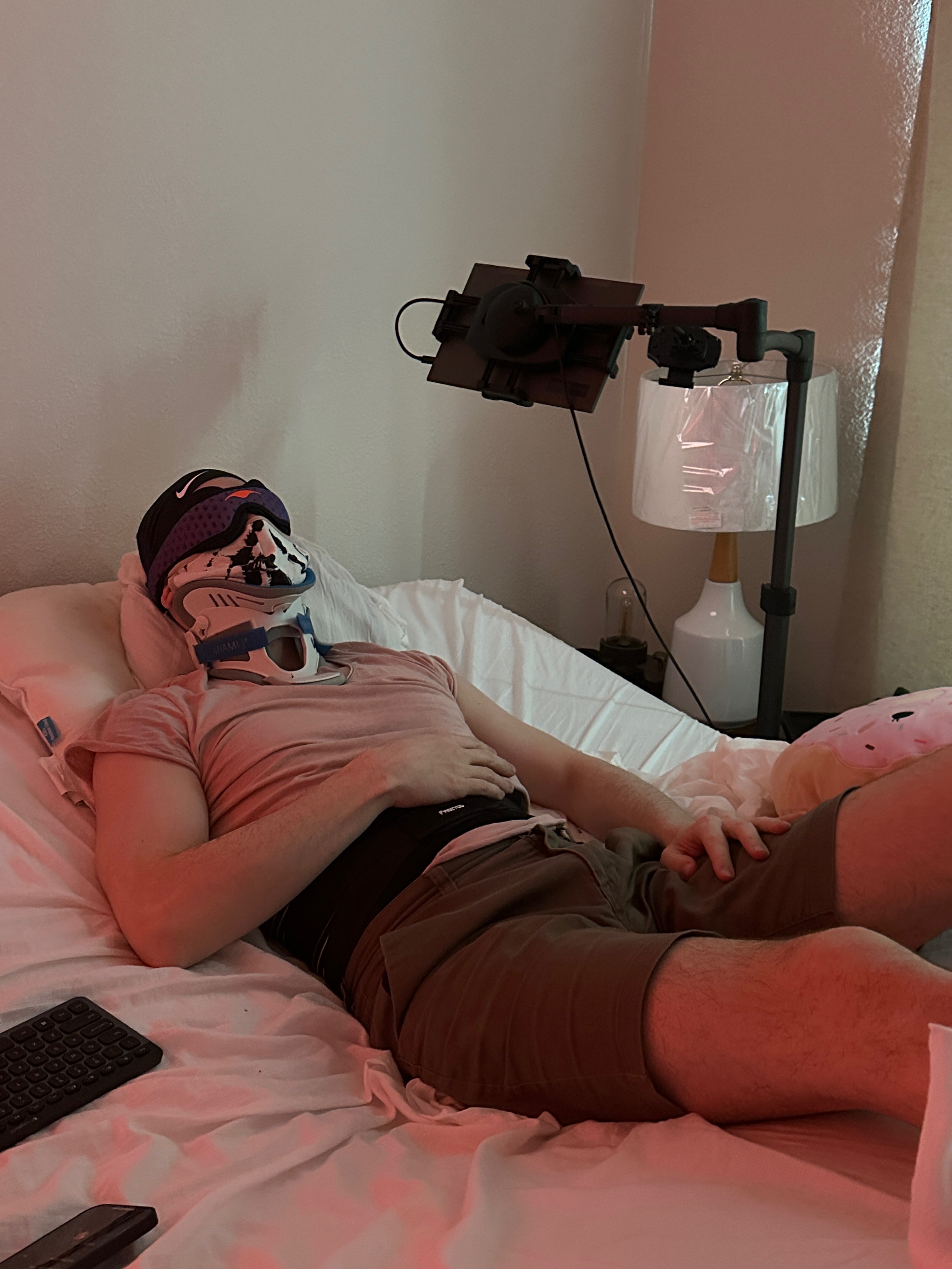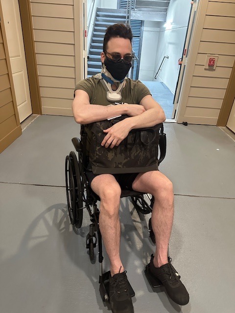 - A custom electric wheelchair that fits his 6'6" frame and allows him to safely leave the house when possible