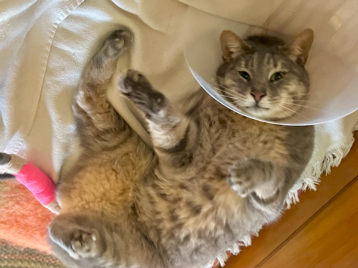 Our beloved Winni, the coolest cat on the block, has found herself in a bit of a hairy situation. Winni got into a scuffle with another cat, suffered some puncture wounds on her tail that got infected and she almost lost her tail! We've gone to the vet over 12 times in the past 5 weeks for surgery, bandage changes and now an ear infection... she's healing albeit slowly. This hefty vet bill, in addition to work stopping entirely because of the SAG and WGA strikes, is clawing at our resources.