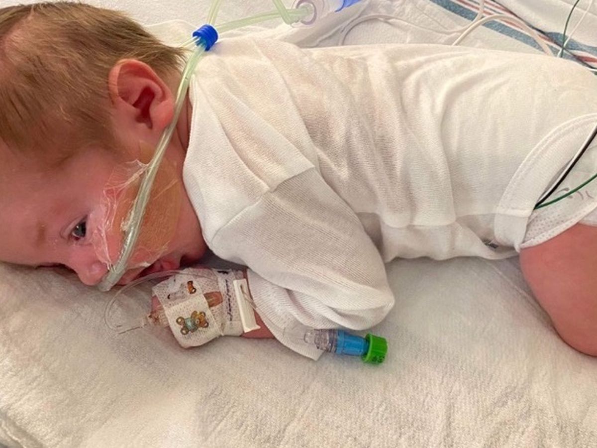 Drew is almost 3 weeks old and has spent 2 weeks of that in the hospital. The first week he had to stay additional days due to being jaundiced, this past week he has spent his stay due to RSV. He has been on 6L fast flow oxygen at 45%. He's really having a hard time being weaned from the oxygen and just isn't improving as quickly as we would all like. All things in Gods time.