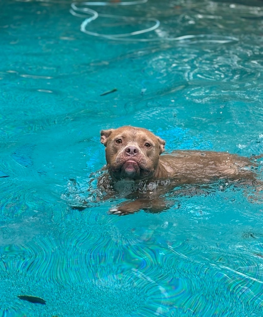 Dozer is a 4 year old Bully Mix. "Land Hippo" is what I like to call him. As many of you know, I adopted Dozer in September 2021 when he was just 10 months old. Initially, I took him in as a foster to keep him from going back to the shelter, but quickly learned that he's an almost perfect dog. He has a history of abuse and neglect. He ended up in the shelter as a stray, was adopted for a few months and almost returned to the shelter all before he was 1-year old. He has a deep scar that wraps around his neck. I don't know how he got it, but the shelter stated he had it upon arrival. It's probably best I don't know...