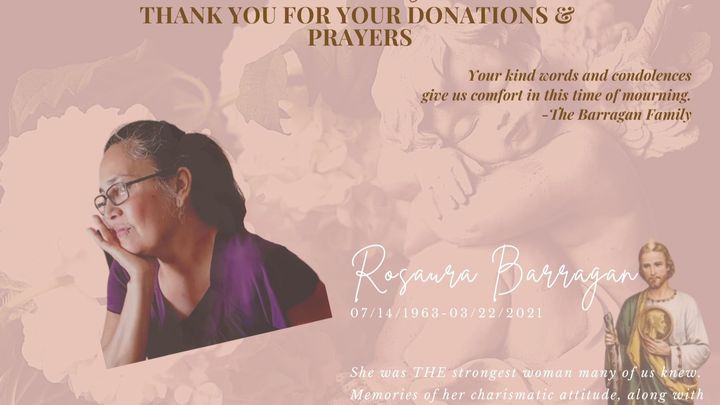 The more I thought about what to write about Rosaura for this GoFund me, the more stressed out I got. I am already going through so many emotions from her unexpected passing so let me speak from the heart and share the impact she had in my own life and ask you to help out with whatever you can to help cover her funeral expenses. She was fighting the big C like the true warrior she was. From the moment she got the news to the last day of her life, she was not going to accept that an illness would take her away from living and loving her life. She never wanted to show anyone she loved the pain she was feeling, the struggle, the many worries she might have been dealing with, knowing her presence here was possibly coming to an end. She was not focused on fighting this monster, she was focused on living her life, being around people she loved, and more than anything giving advice to each one of us, while she was still here, to be able to handle the time she would be chosen to leave this world. I became so close to her and learned many things in a short period of time that I am forever grateful to have been blessed with. One of our last conversations was the most meaningful I ever had with her. She shared her point of view on life, on being a mother and things she wished she could of done differently and most importantly she shared with me how she wanted to make sure I learned from her own mistakes and be better. She wanted me to be a better daughter, mother, sister, friend, and partner. She said many things that I will try my best to do daily and because of her I am and will be a better person. She not only wanted better for me, but she also supplied me the tools to do this. I knew this day might be in our future but never ever did I think it would be 2 weeks after that conversation that she was rushed to the hospital and gone so quickly. Most people would feel they didn’t get to say goodbye when it happens unexpectedly and quickly, but I find my peace and strength in what has happened because she made sure I had it before she left us. She told me to trust in God and that is what I will keep doing and when I feel like I’m about to breakdown and cry I can hear her say NO LLORES, LA VIDA SIGUE...and I trust she is right because I trusted her.