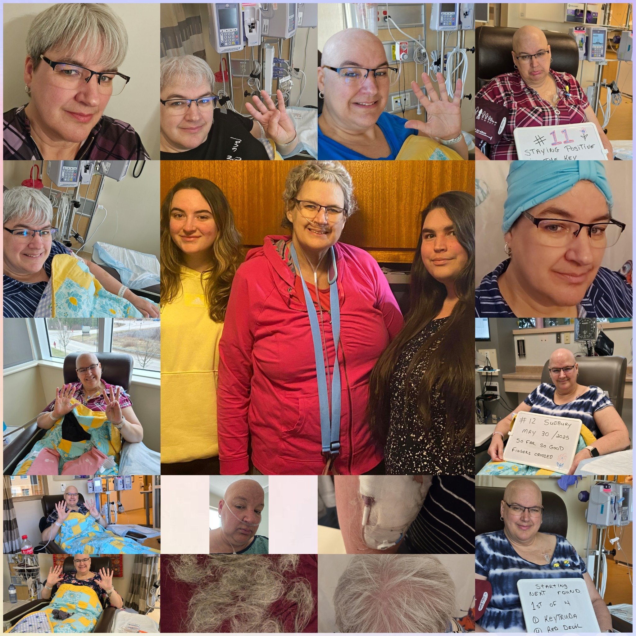 My mom began to really struggle with her health in 2024 while she was working at a dealership in North Bay. She eventually had to go on medical leave for a few weeks while the doctors tried to figure out what was wrong. Unfortunately before the doctors could figure out what was wrong she was forced to leave her job at the dealership due to her health requiring her to take so much medical leave. She began to notice a lump in her armpit but because she had just been sick with a cold as well she thought it could just be swollen lymph nodes due to the cold. When the lump in her armpit got bigger the doctors ran some more imaging on her armpit and breasts. Mid January 2025, a couple months after losing her job she was diagnosed with stage 3 triple negative invasive ductile breast cancer. In March she began her first round of Chemo which was once a week for 12 weeks and though she lost her hair, spirits were still good and she was still about to drive and do some things (so long as she took it slow and rested frequently). At first my mom was given a Pic line for her Chemo but this restricted her so much as she couldn't get it wet so in April during her first 12weeks of Chemo my mom got the surgery for the port so she could try to have some sort of enjoyable Summer camping and swimming with her Grandkids. June 13th 2025, her oldest granddaughters 15th birthday, my mom had her first round of her second set of Chemo which also had the immunotherapy and the red devil treatment in it. Unfortunately her body didn't react well to these new Chemo meds and she became very sick and was admitted into the hospital by the end of June. From late June until the end of August she was constantly in and out of the hospital spending about 98% of her summer extremely weak and sick in the hospital and 1 or 2 days (3-4 at most) at home every week or 2. Near the end of the Summer it got pretty scary with how weak she was but then the doctor finally figured out the Chemo wiped out her Pituitary gland so now she needs to take steroid medication otherwise she becomes very sick, unable to eat and drink and ends up back admitted in the hospital again. Because of all this the rest of her Chemo had also been cancelled.