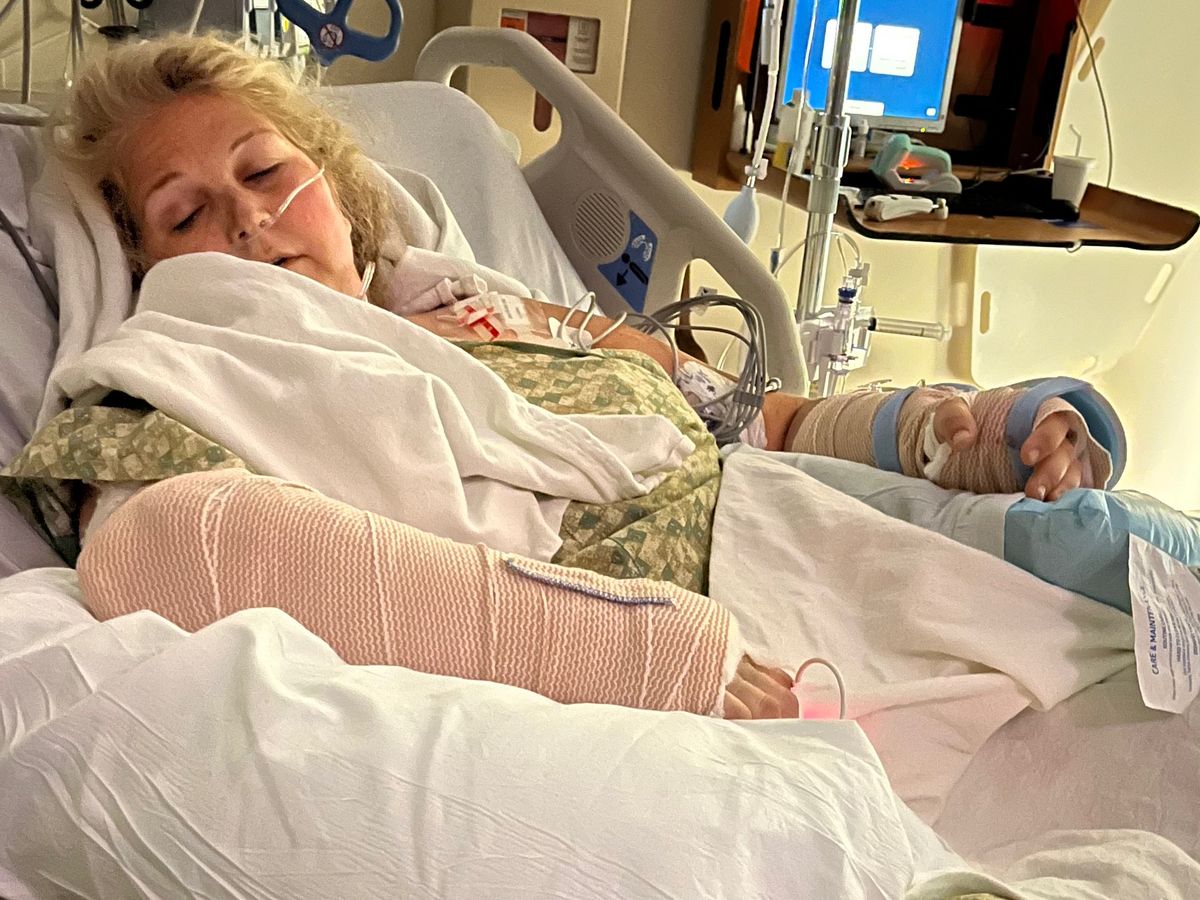 She has had 7 surgeries to date. As of April 8th, she has started to experience the beginning of PTSD. She will not be able to bare weight on her legs or arms for the next ten weeks, and then she will be able to start putting weight on one leg.