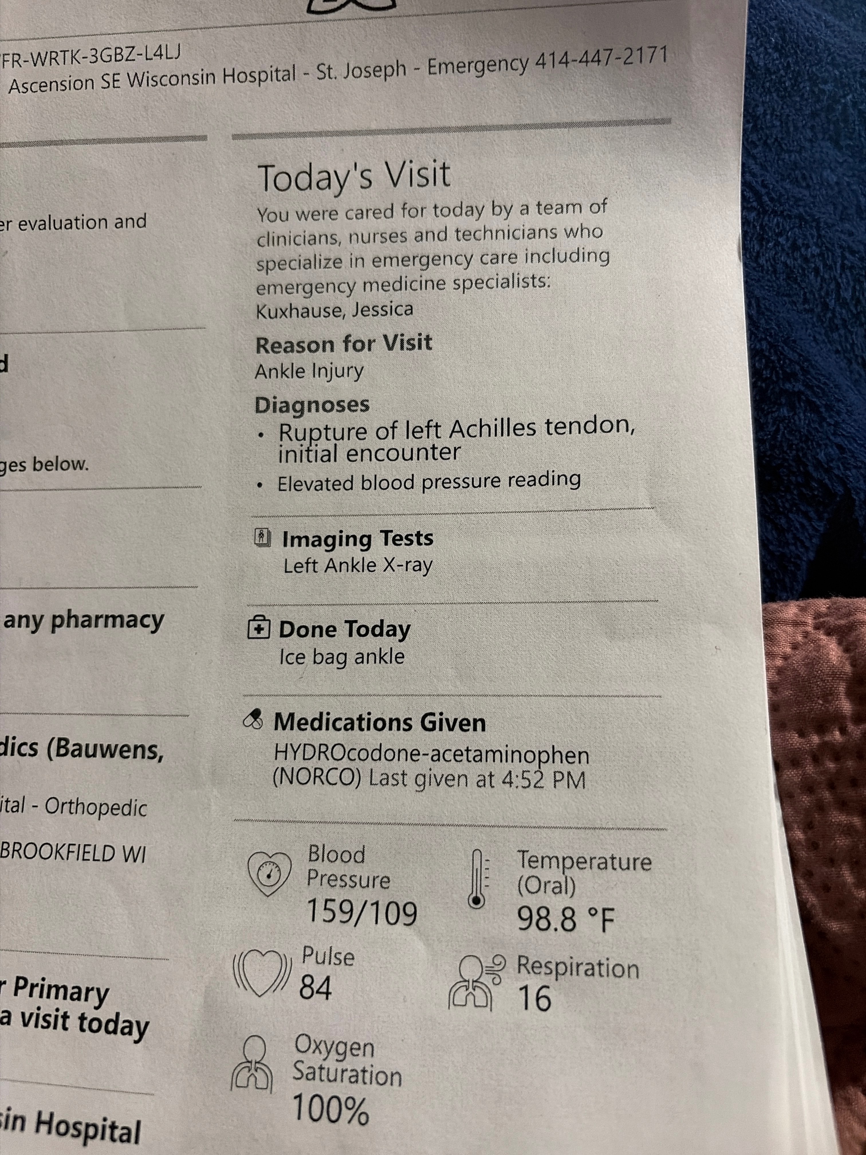 I tore my Achilles tendon on Sunday playing basketball. I currently don’t have any health insurance, but I have a follow-up appointment to see what to do next.