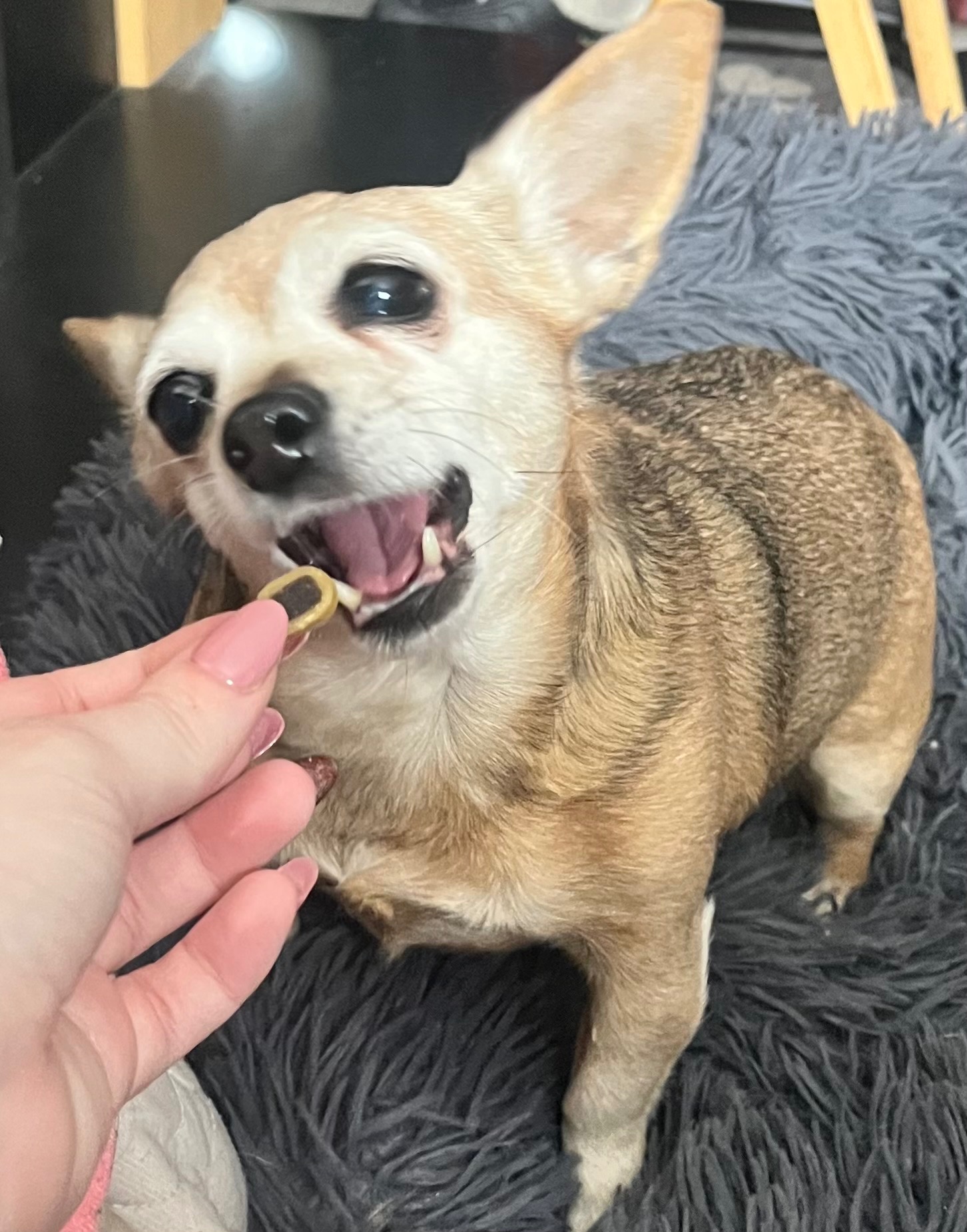 her name is Koko, she’s 12 years old, she’s a beautiful chihuahua cross who has the attitude of a big dog.