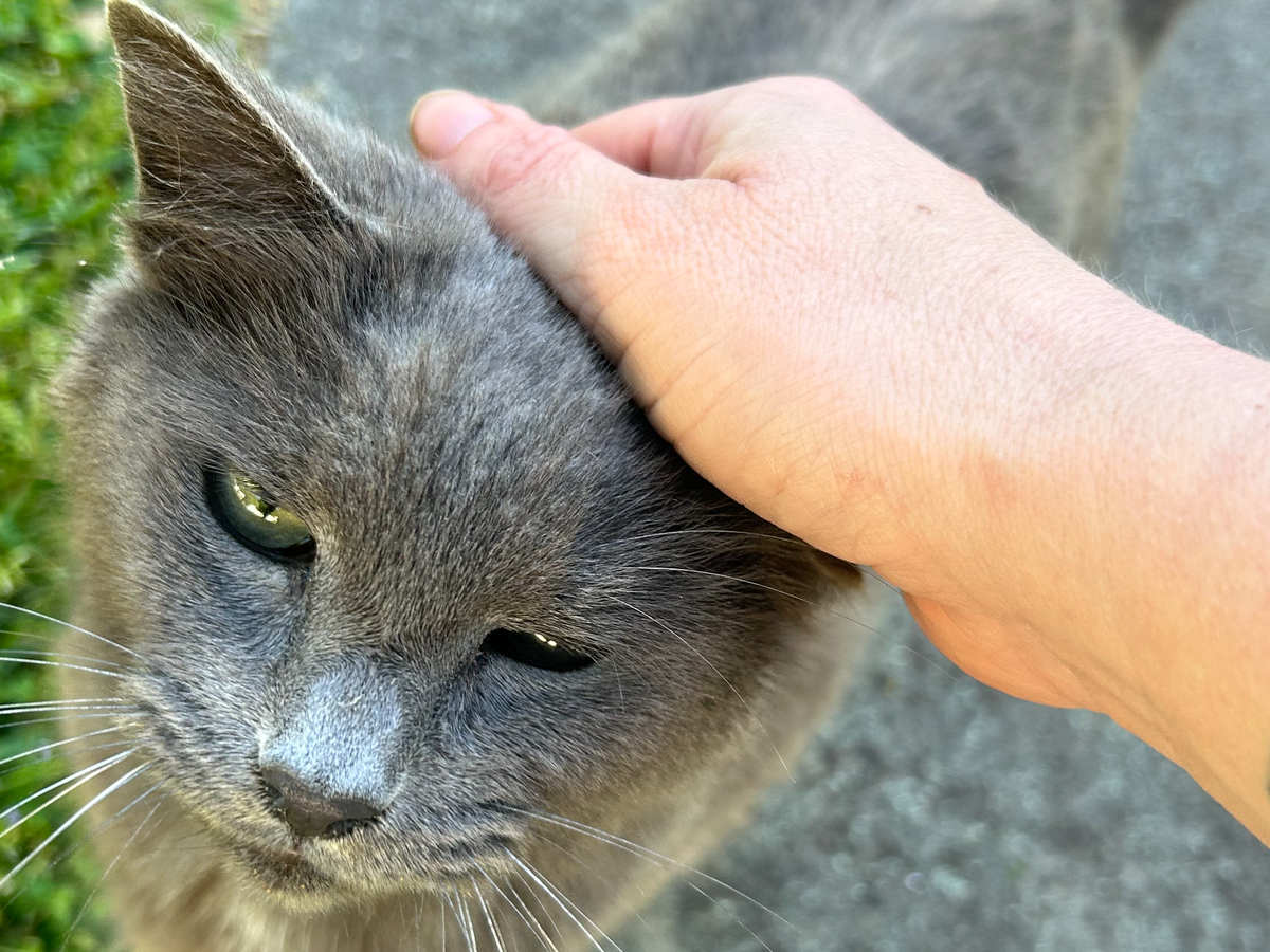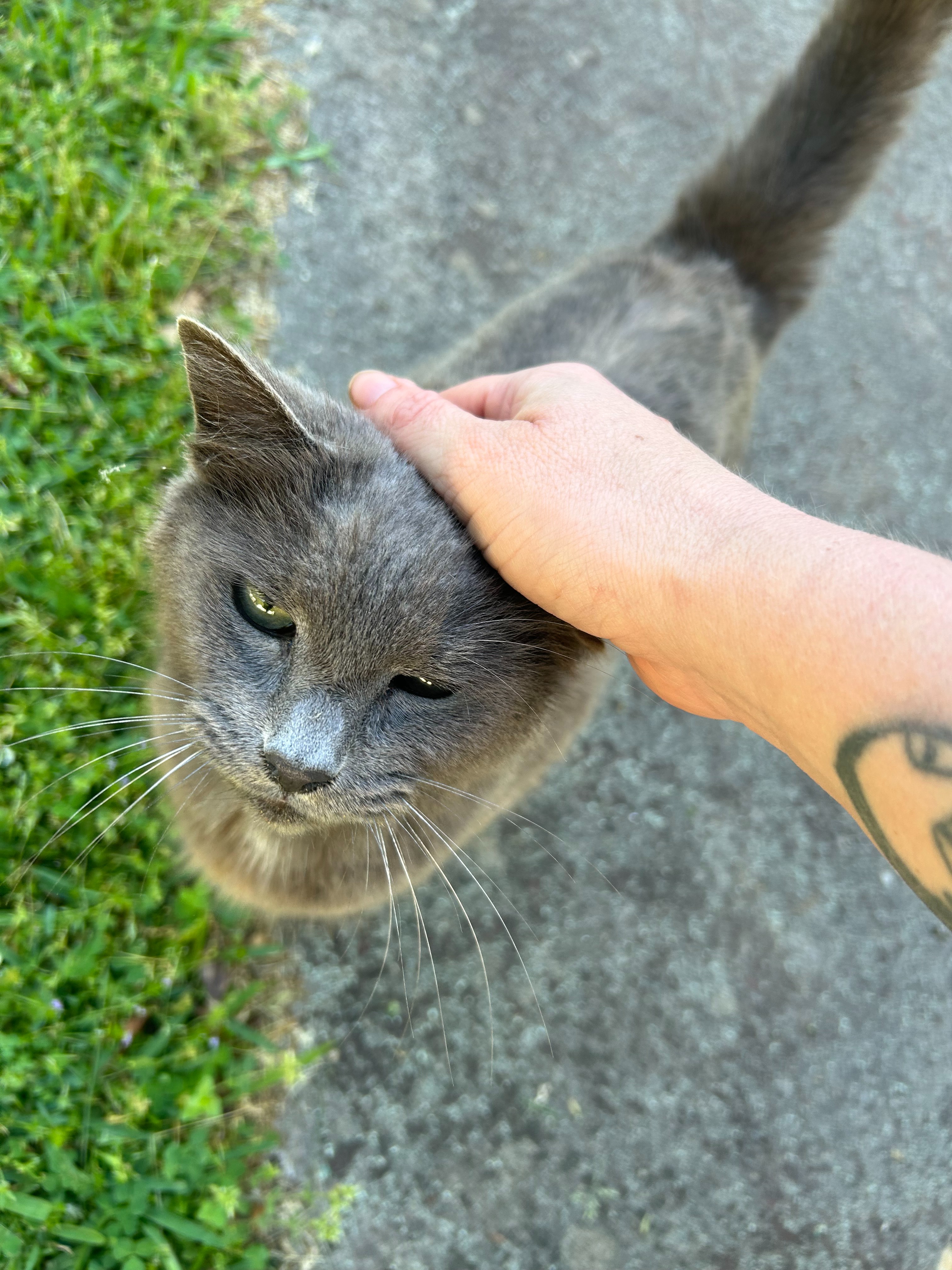 My name is Carrie Lorig, and I do my best to take care of the outdoor cats in my Atlanta neighborhood. The house I moved into came with a colony, and after we got everyone TNR'ed or adopted, I started learning about what I could do to support the other community cats in my neighborhood. I TNR, I foster, and I help feed my outdoor friends. Dogwood Pepperoni, aka "Woody P.," became part of an elderly neighbor's colony after her owner passed away. I support that colony by feeding them once a day and keeping up with their flea medicine. Woody P. loves food, pets, rolling on the ground, and shaking her tail with excitement when I come by with Friskies.