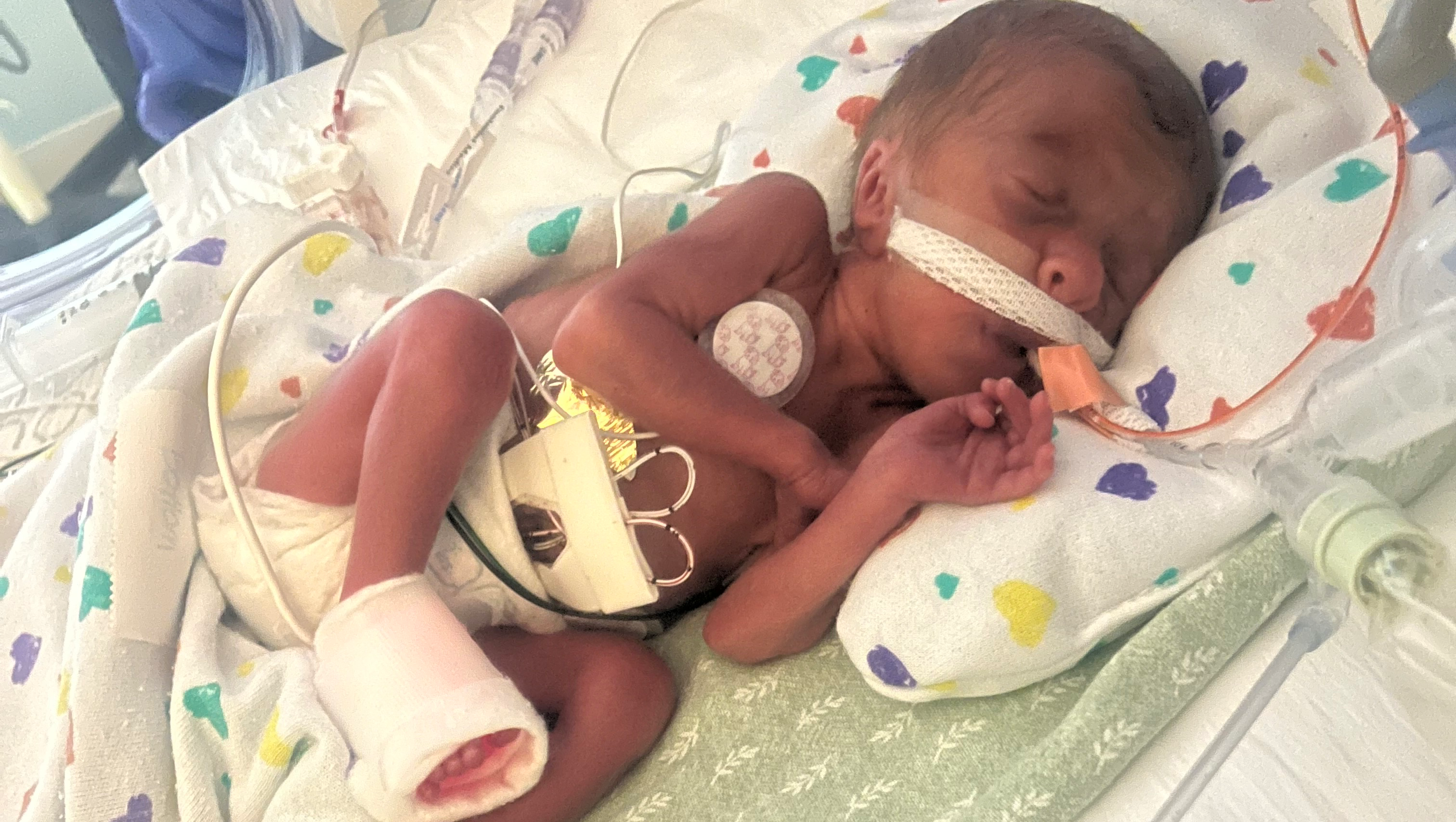 Baby Wrenlee was born that morning at 5:38 am and rushed to the NICU. Wrenlee was born exactly at 27 weeks gestation, weighed 1 lb 13 oz, and measured 33 cm long. They told us to expect her to be in the NICU in South Carolina until her due date, which was August 9th.