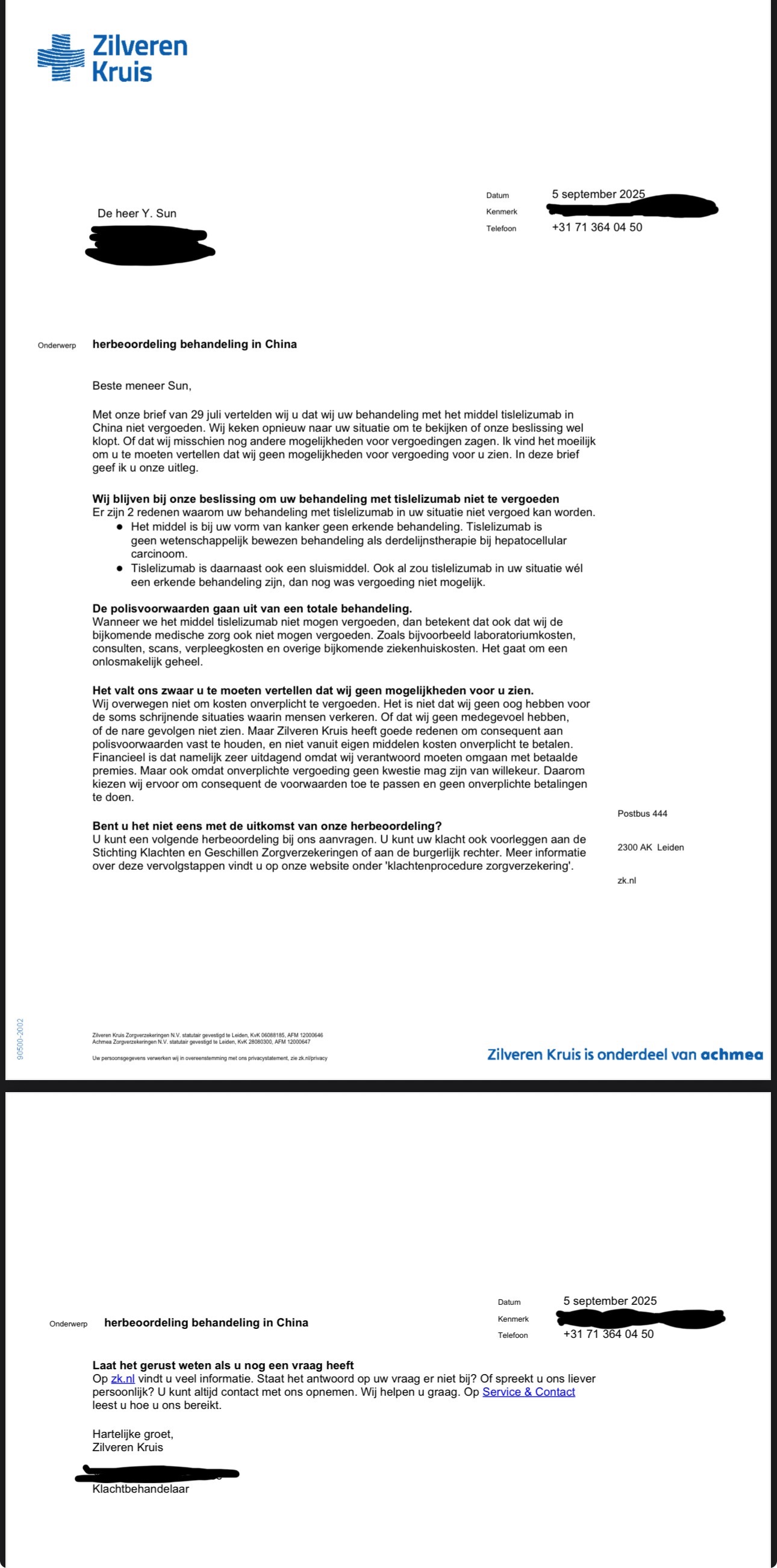 In the Netherlands, tislelizumab is currently categorized as a “sluismiddel” (a locked or pending drug awaiting reimbursement approval). Because of this bureaucratic status, our Dutch health insurance does not cover the treatment abroad, even though it is medically necessary and effective for my father.