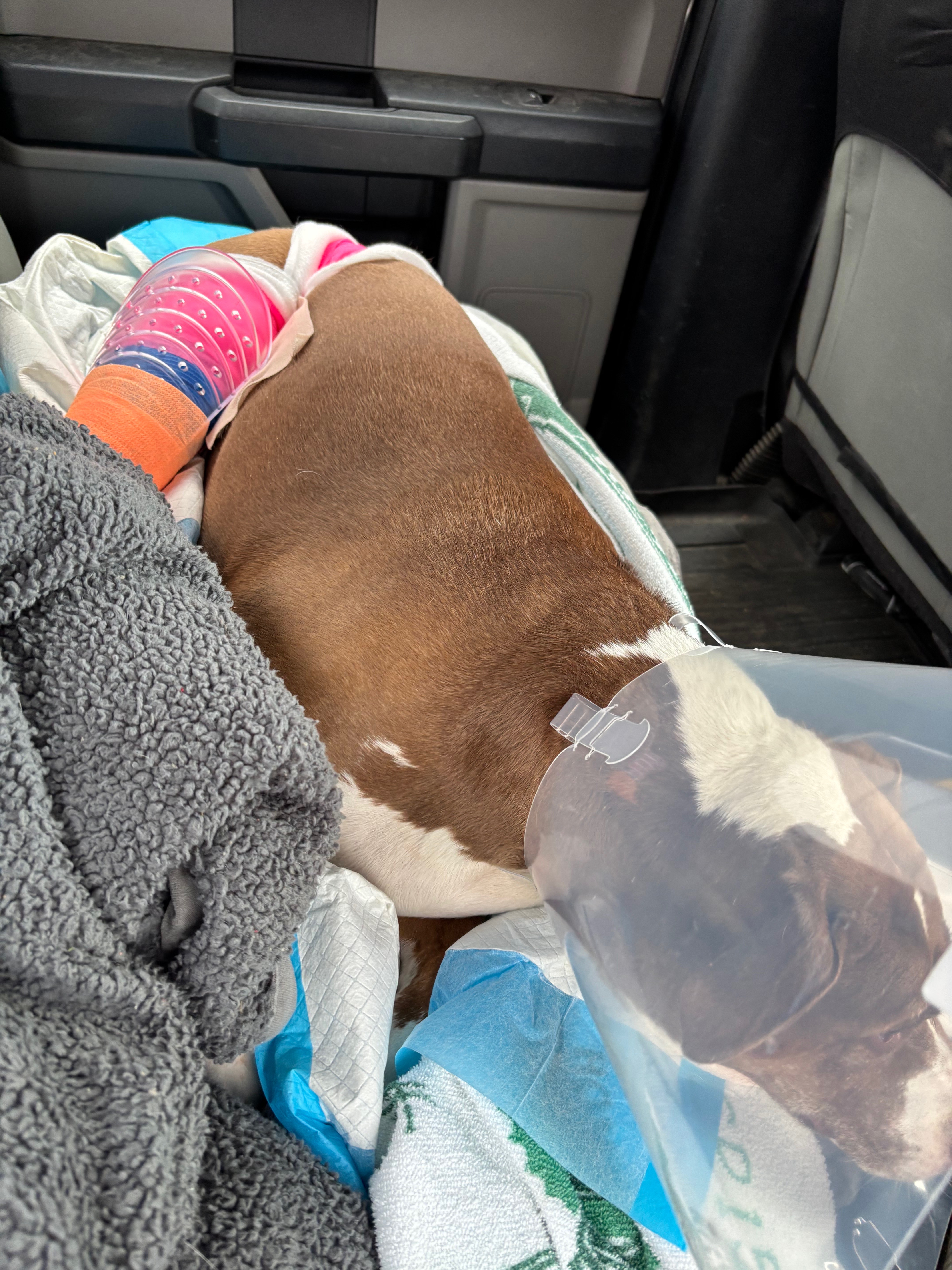 On Sunday, May 25th, Zoey was in a terrible, traumatic accident on our property. She was doing her usual sunbathing in the driveway when she was hit by a truck and pushed approximately 8'. She was rushed to PETS Emergency in Lancaster and after a few hours they determined that she would need to go to UPenn in Philly.