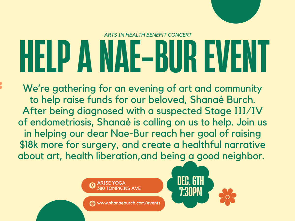 My prayer is that this message reaches you in good health and with hope. I am Dr. Shanae Rebecca Burch—an arts in health liberation scholar, public health educator, and performance artist—writing to invite you into a moment of community care and artistic healing. One of my nicknames since teen-hood has been "naebur", and as a deacon at double love experience church I spend time contemplating what it means to be a good neighbor as "naebur".