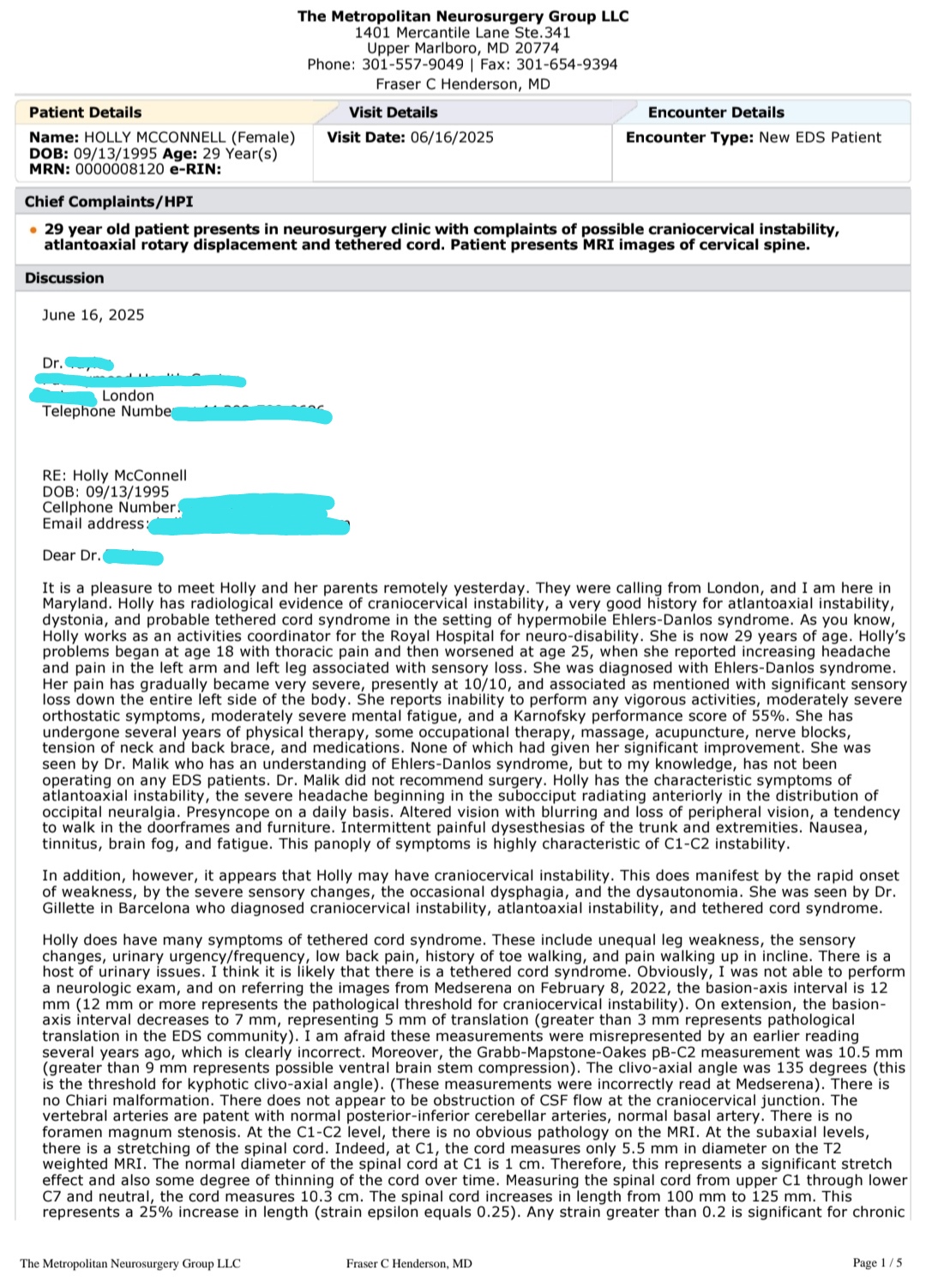 I am currently very poorly and under the care of US Neurosurgeon Dr Fraser Henderson who specialises in craniocervical junction fusions for people with severe forms of Ehlers Danlos Syndrome (a connective tissue disorder caused by faulty collagen genes). EDS is very poorly understood and there are limited treatment options in the UK, especially for complex cases, so I had to fly to America for my care.