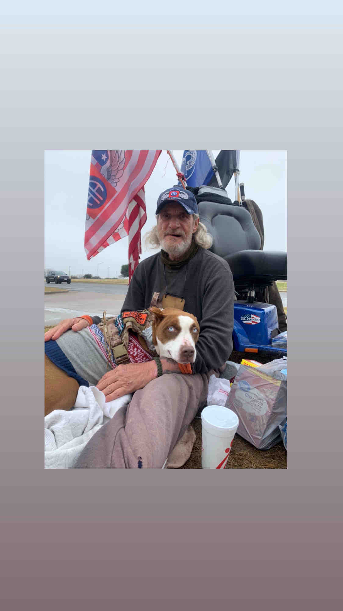 For most of his life, Clint and his four legged service dog, Lucas have sat quietly on the curb of a Waco Chick-fil-a with a sign that reads “WAR VETERAN- anything helps.”