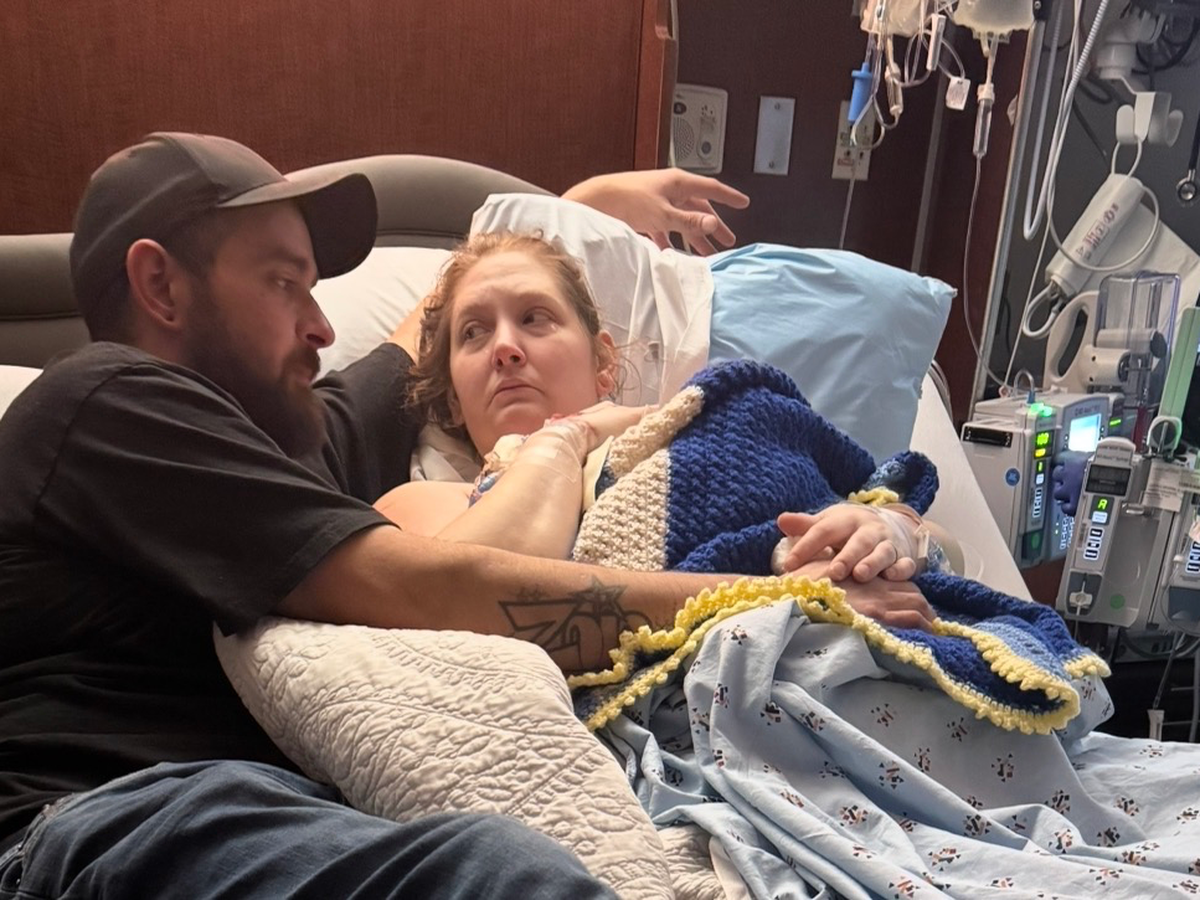 Justine experienced a sudden and severe placental abruption at 8 months pregnant. On the way to the hospital, she was going in and out of consciousness and lost a significant amount of blood. It was a terrifying, life-threatening emergency that required doctors to act immediately.