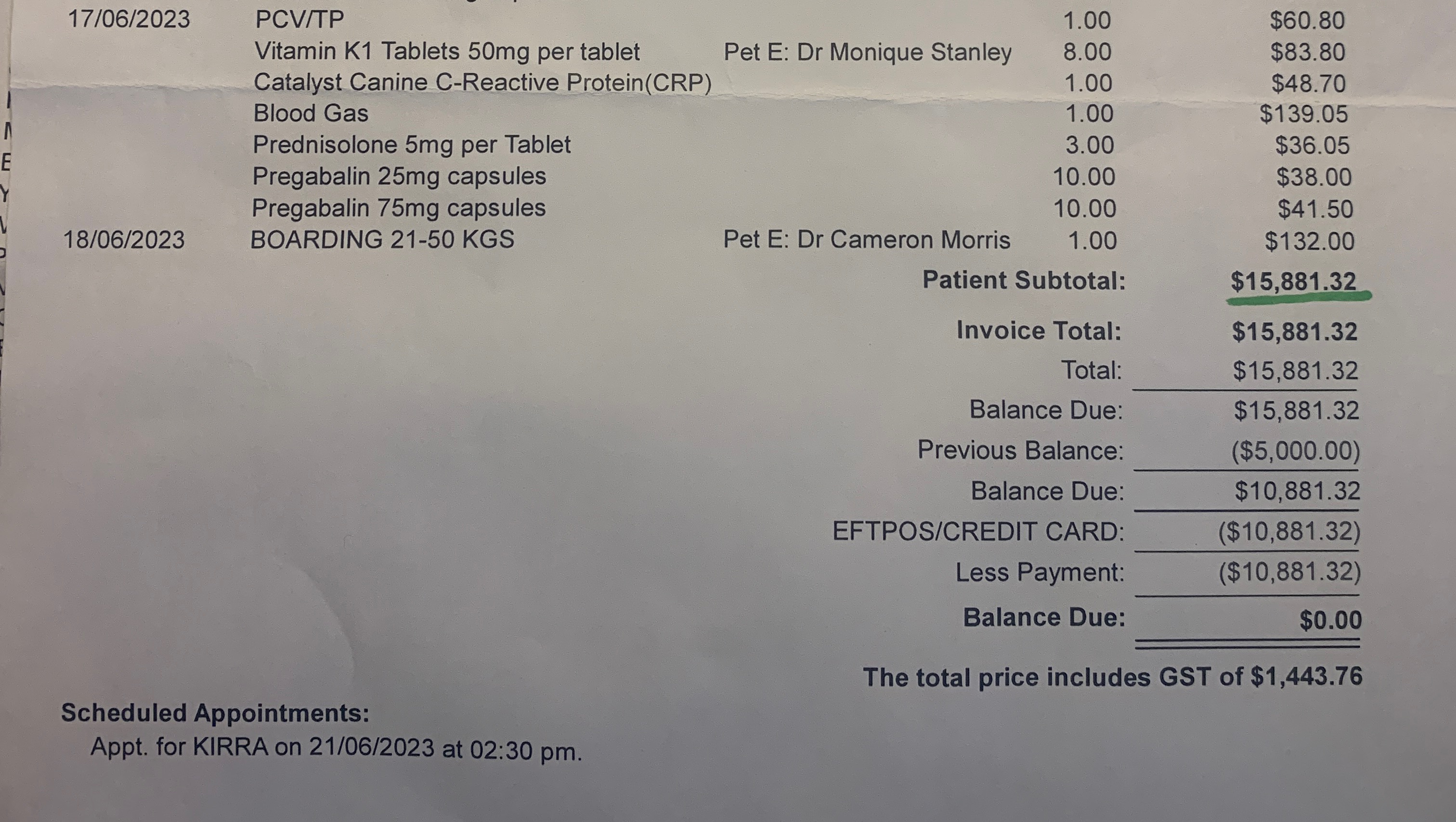I always paid health insurance for Kirra, where they renew the contract automatically by email. But they have never let us know that they would only cover $5000 per year after she turned 9 years of age and we ended up with a $23.777 bill.