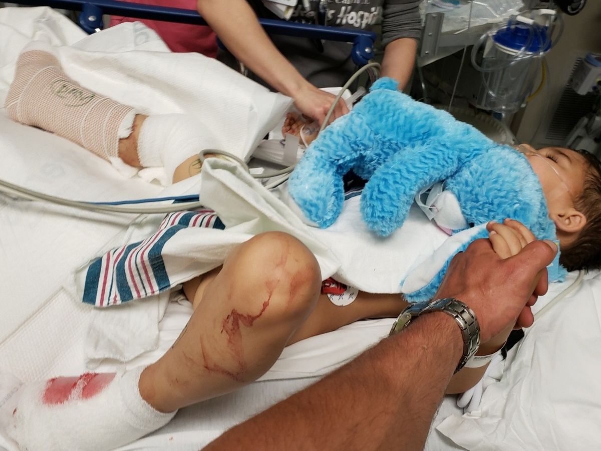 My son is 4 yrs old. On Easter day a man backed over him with a riding lawnmower. This was a accident He has a broken left foot with two gashes upon it. His right ankle was shattered his right toe is gone! His right foot is 75% cut off. His right shin bone is broken he has rods and screws to help it heal. He also has a deep gash on his knee. They will have to also have to perform a skin and nerve graph on him. He will be in a wheel chair the next few months. Then it will be followed up by lots of physical therapy. My son is 4yrs old no child should have to endure such a thing!
