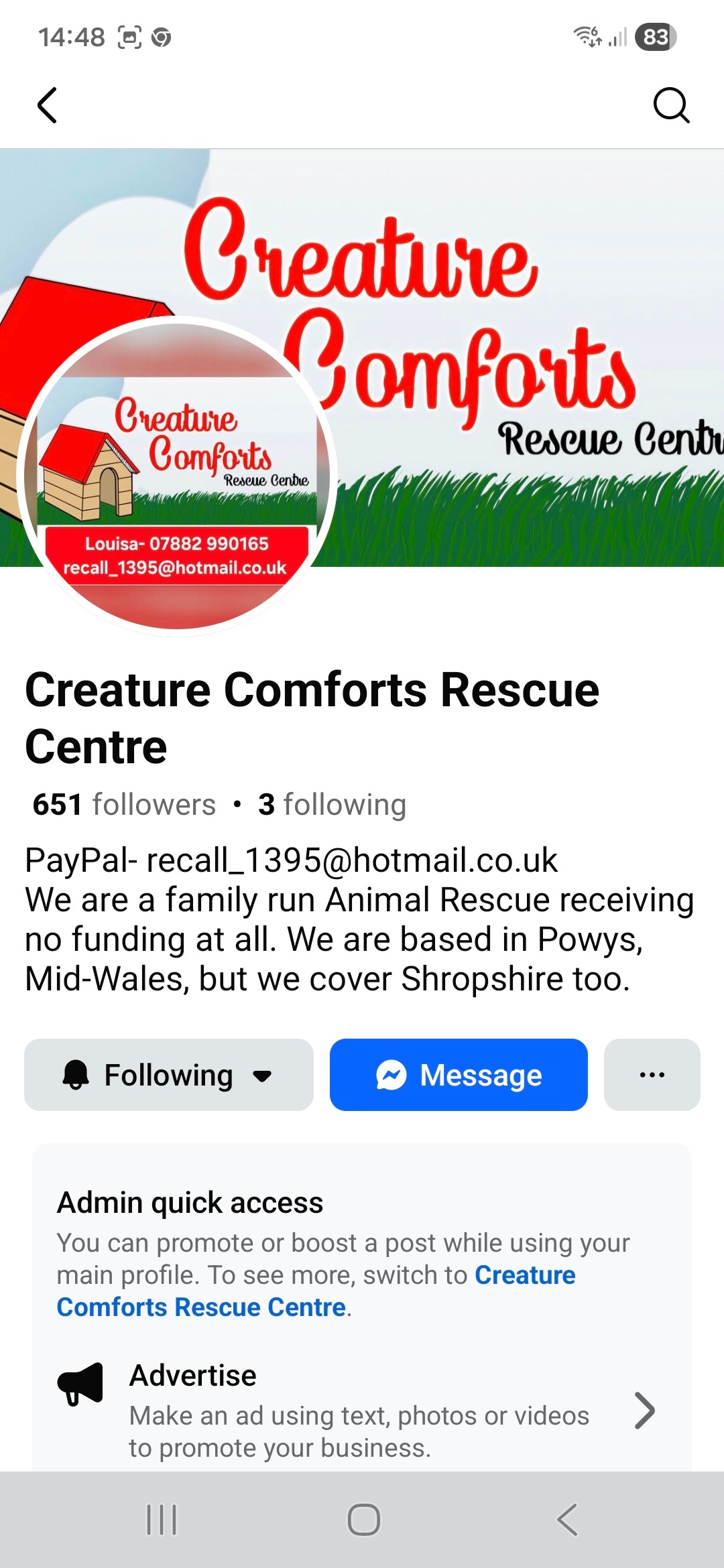 Hi, my name is Keira and I love to help animals in need. I've set up this fundraiser for a small family run animal rescue centre in Mid-Wales. Several animal enclosures have sadly been damaged in last weekends storm, and with the rescue centre being located high up on a hill they were hit the worst by the winds, heavy snow and freezing conditions. If I raise over my total it will go towards the centre's huge animal feed bills. I care about animals so much, especially those in shelters wanting a warm, loving home. Please help me reach my target.