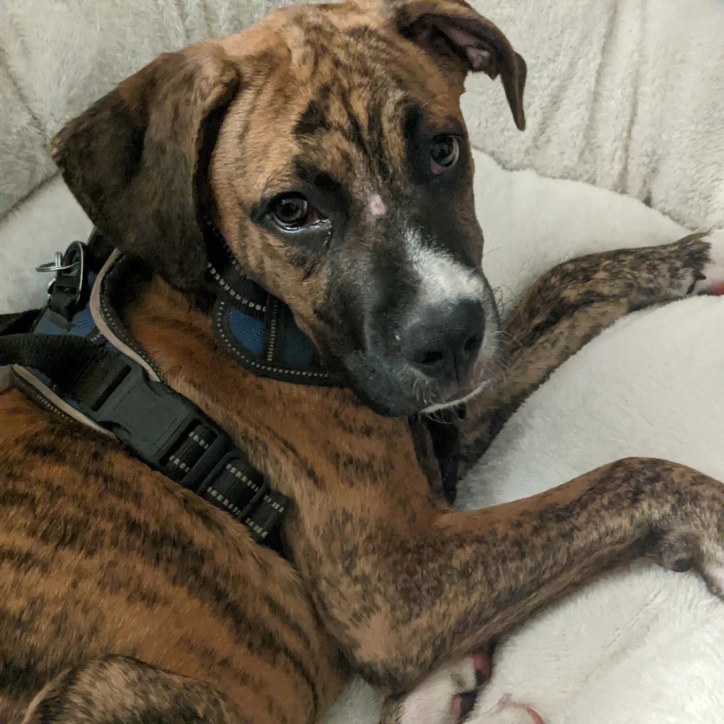 Hi my name is Marlo. I need help with training. I need CGC classes to train me not to jump on people, not to play bite anymore, to learn to stay & leave it when I'm told to... and a few other things. CGC is also the class that prepares me for service dog training, which I also need for one of my mamas! She has high pitch deafness & cannot hear fire alarms, police, fire, EMS sirens, or even the kitchen timer, doorbell, or microwave. My Momma K is hyper mobile and has some mobility issues, vertigo, & possibly Ehlers-dandros syndrome too (she's in the process of getting diagnosed.)