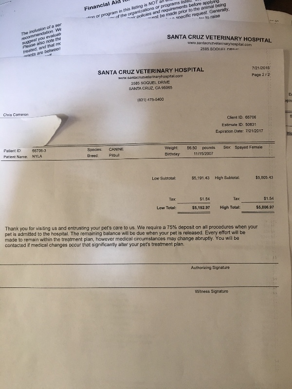 The estimate for the surgery I received today is $5,192.97 on the low end to $5,806.97 on the high end (estimate posted). I’m not the kind of person to ask for help, usually I am the person giving help to those who need it, but I am desperate to save my Nyla and saw what good hearted people there are on Go Fund Me who help people like me when an unexpected desperate circumstance arises. Please, if you have anything at all to spare, $1, $5, $25, or more, I would be forever grateful if you could assist me in helping to save my Nyla. If you cannot help with a donation, I would appreciate your prayers…the power of prayer is strong.