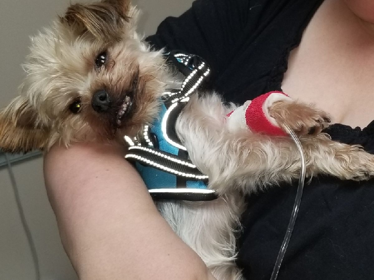 This is Colby aka Tiny Man. He was a stray, running by the river alone in a gravel pit for months. When we found him, he was so scared. He wouldn't leave our side in terror that he would be abandonded again. His fur was so long and matted, his nails were digging into his paws. His behind was so inflamed and impacted with feces we had to use diaper rash cream on him. We looked for someone missing him but never found anyone looking for him and he was not microchipped. I was in disbelief that no one was missing him! He was so little and adorable! We decided he would stay with us and become part of our family, which includes 3 other dogs with special needs and 4 cats. About 6 weeks after he came to live with us, we took him for a checkup at the vet, along with our other 3 dogs. He was vaccinated, heartworm tested and was given heartguard. Two nights later, he started showing unusual symptoms. He would walk aimlessly for hours, fall, become disconnected and drool uncontrollably. It happened once so we thought it was just anxiety. He was always walking, he never rested for long. We thought it was maybe just stray life. He had another "episode" a few weeks later, 2 nights in a row. We called the vet and got him in for tests. Liver shunt or epilepsy was suspected. First tests didn't show liver shunt so he was given phenobarbital for epilepsy. Seizure meds did great for 2 days. On the 3rd day, he started having the worst episode yet. He was rushed to the vets office and further tests were done and it was determined he did have the liver shunt. We very nearly lost him. He was close to death but our guy pulled through. He is now on a very restricted diet, prescription food and medication. He may or may not live long like this, but we were told his liver will eventually fail. He is doing good so far but it can change anytime. To be well and live a normal life, he needs liver shunt surgery. The shunt/vein is tied off and when it is closed, dogs can live a normal life! We want this for our little Colby Cheese! Help us help our Tiny Man! Thank You. ♡ Marcus and Valerie