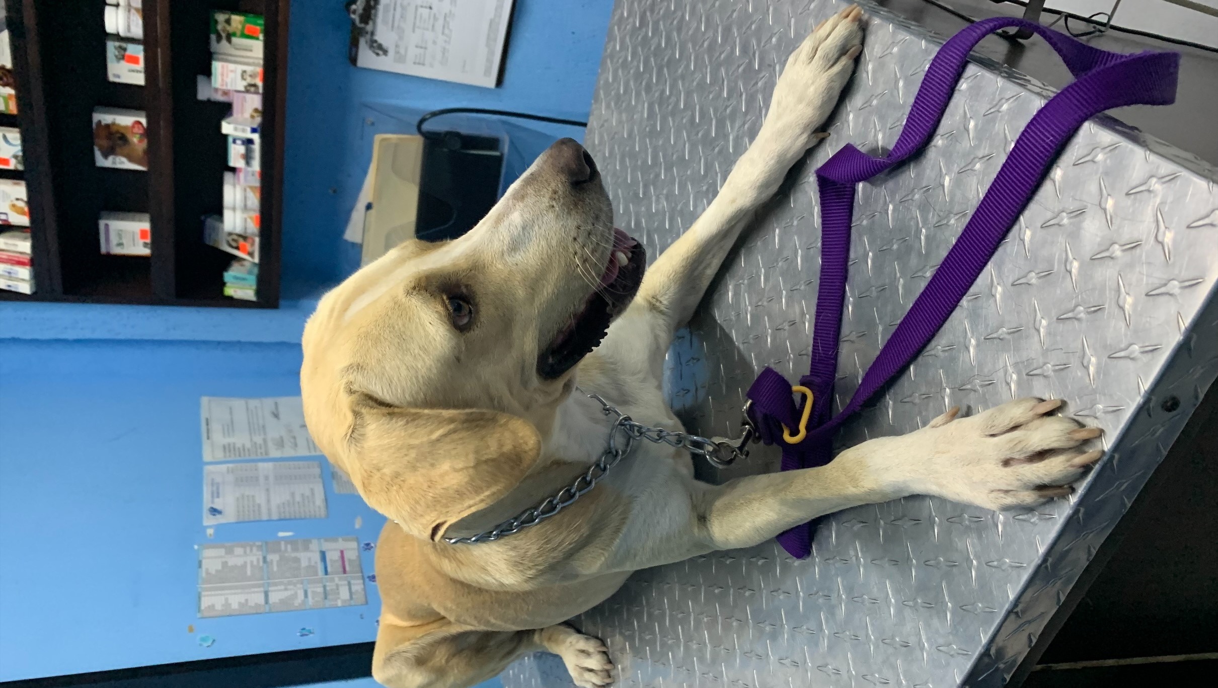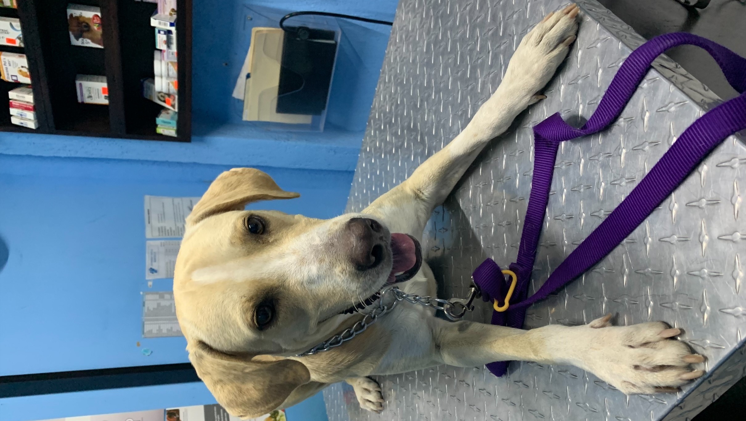 After visiting the vet, we found that he was most likely abandoned. He received all necessary shots, vaccines, and treatments such as deworming, Flea and Tick and we set up an additional appointment with another more reputable Vet that could get him ready to be approved to travel to Canada.