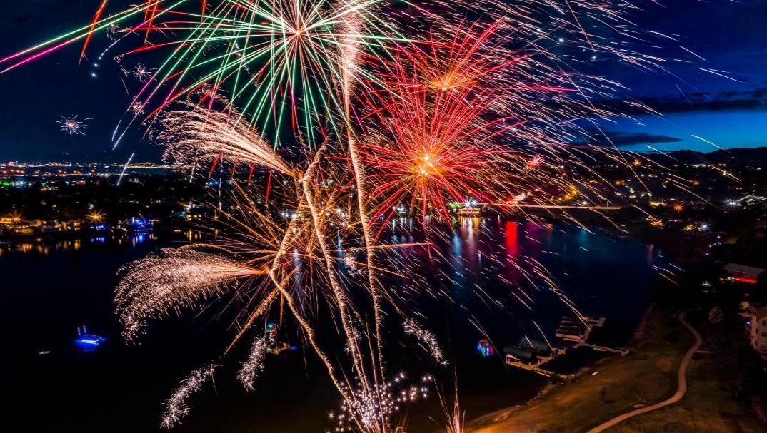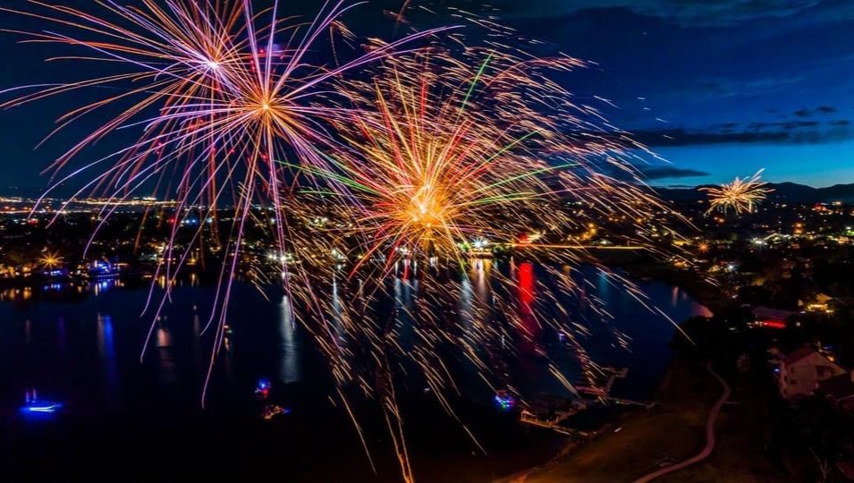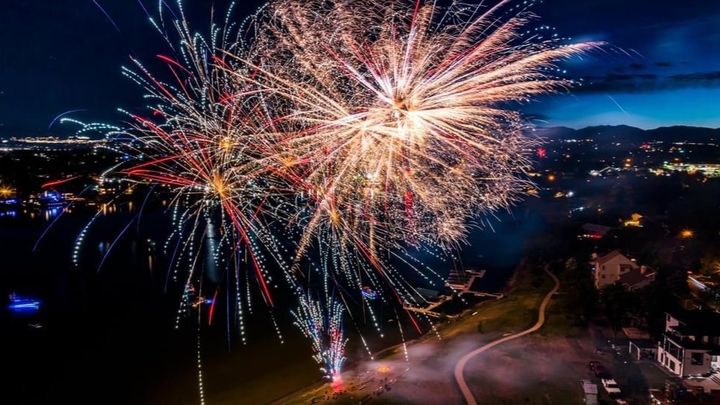 It will be a fully permitted, insured, professional fireworks show over the water!!! Bee Lake Productions, and our own Kevin Work, did an amazing job last year.!!! Check out a few sample drone photos below (by Gorilla Capturing), from last year's show.