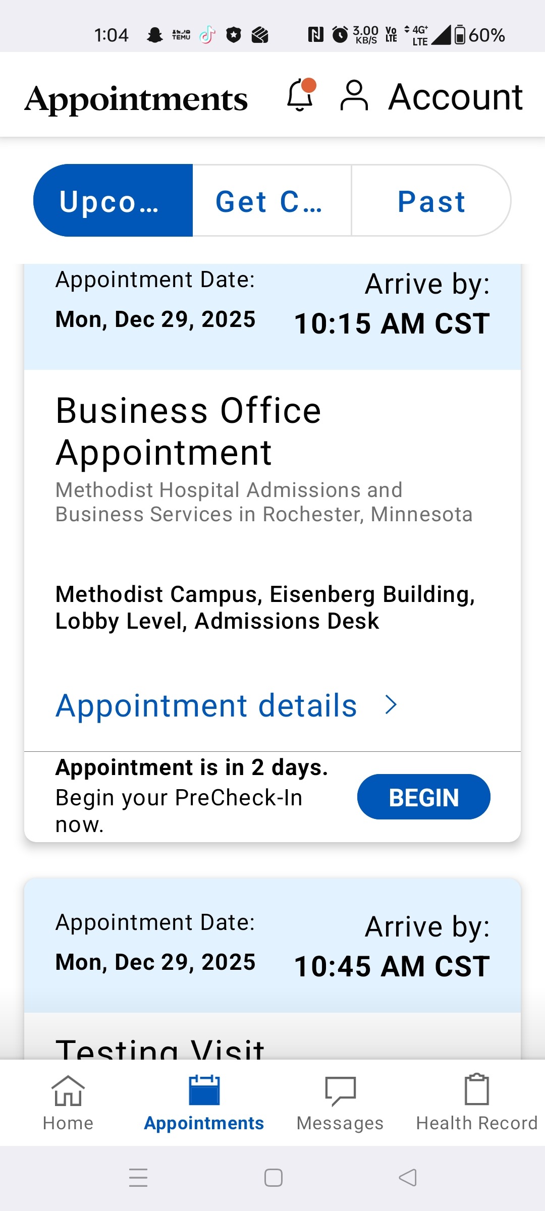 Travel to and from Rochester for appointments