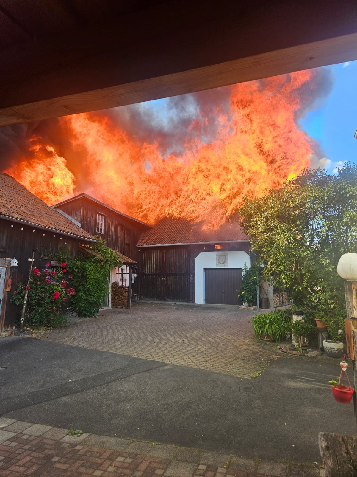 Nur zwei Wochen nach unserer Hochzeit mussten wir mit ansehen, wie unser wunderschöner, über 150 Jahre alter Hof, den wir mit so viel Liebe gepflegt haben, in Flammen aufging. Ein über 150 Jahre alter Nebengebäude- bzw. Scheunenkomplex brannte völlig nieder, unser Wohnhaus wurde ebenso beschädigt, und alle im Nebengebäude befindlichen Gerätschaften und Erinnerungsstücke wurden zerstört.